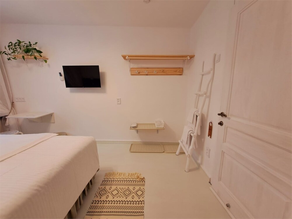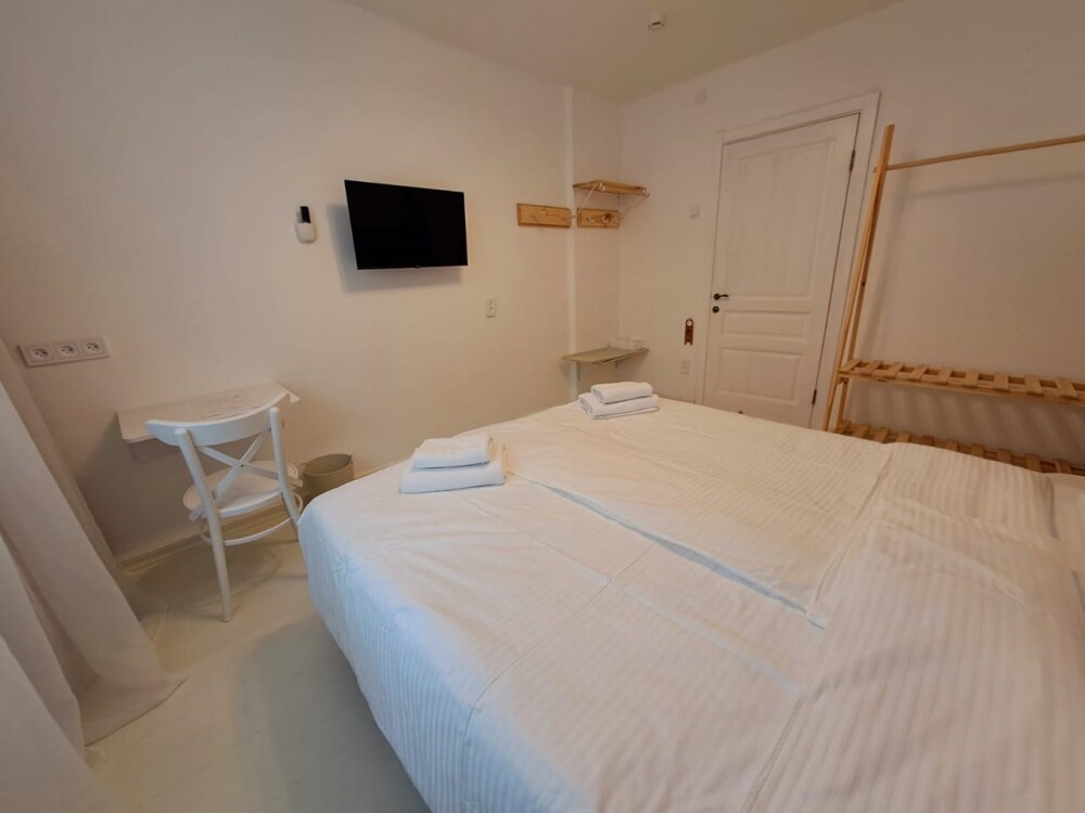 В номере есть всё необходимое для комфортного проживания: удобная двуспальная кровать, стойка с плечиками, стол, стул, светонепроницаемые шторы, держатели для горнолыжного оборудования, тапочки. Также к Вашим услугам телевизор со Smart-tv, обогреватель, сушилка для обуви.