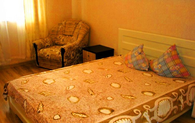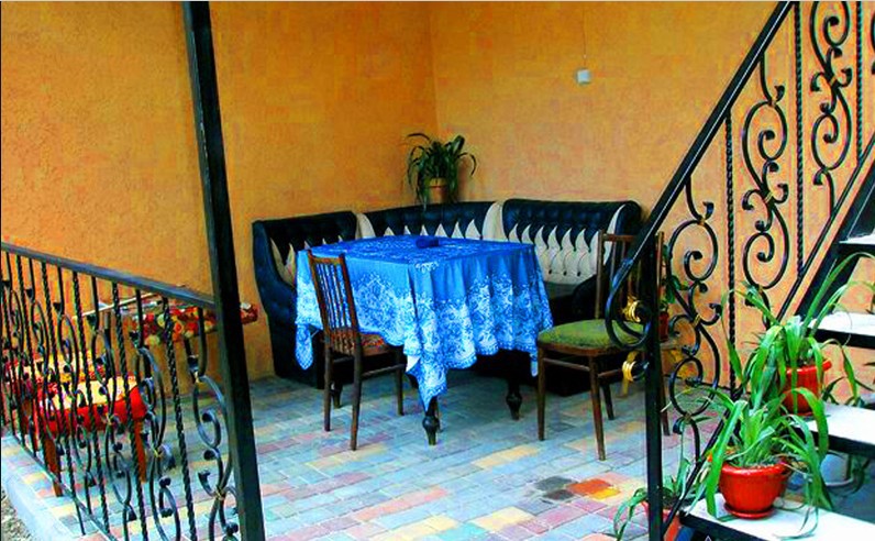 Сдаются номера квартирного типа в частном доме с отдельными кухнями. Имеется специальное крытое место для стоянки перед двором. Два выхода со двора на две разные улицы. Дом окружён бетонным забором, есть места для парковки машин. Гостевой дом новый с дизайнерским внутренним и внешним оформлением. Номера со всеми удобствами внутри расположены на первом этаже. Каждый номер-квартира имеет отдельный вход и свою кухню — мини-кухня с электрической плиткой и набором посуды, большим холодильником и электрочайником. Есть интернет. Санузел расположен также внутри. Сантехника абсолютно новая, санузел облицован красивой плиткой. Вода горячая и холодная постоянно, водоснабжение автономное с электрическим подогревом. Есть отопление.