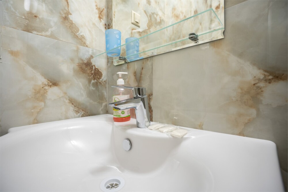 Удобства в номере, вид на море, третий этаж, рядом балкон.
