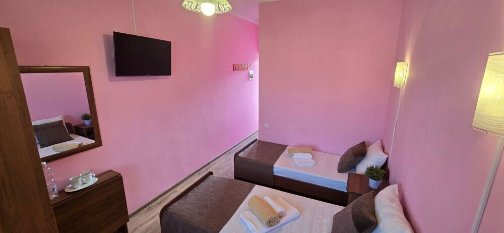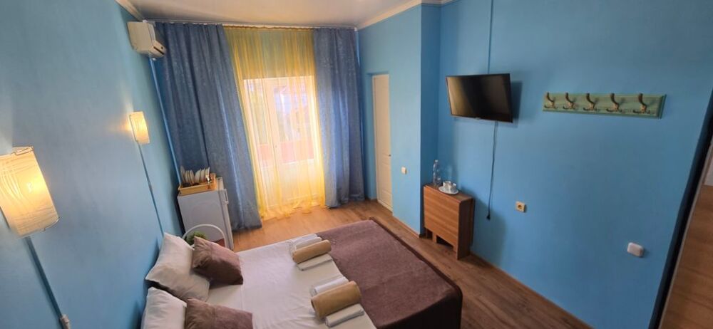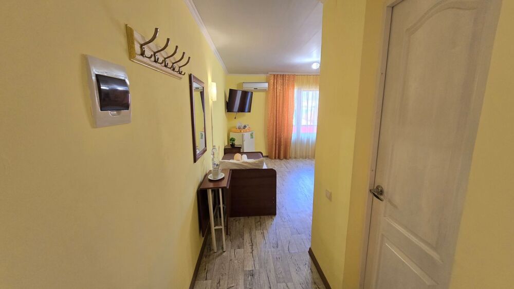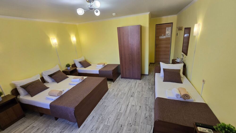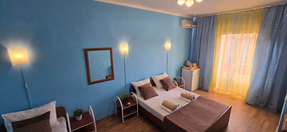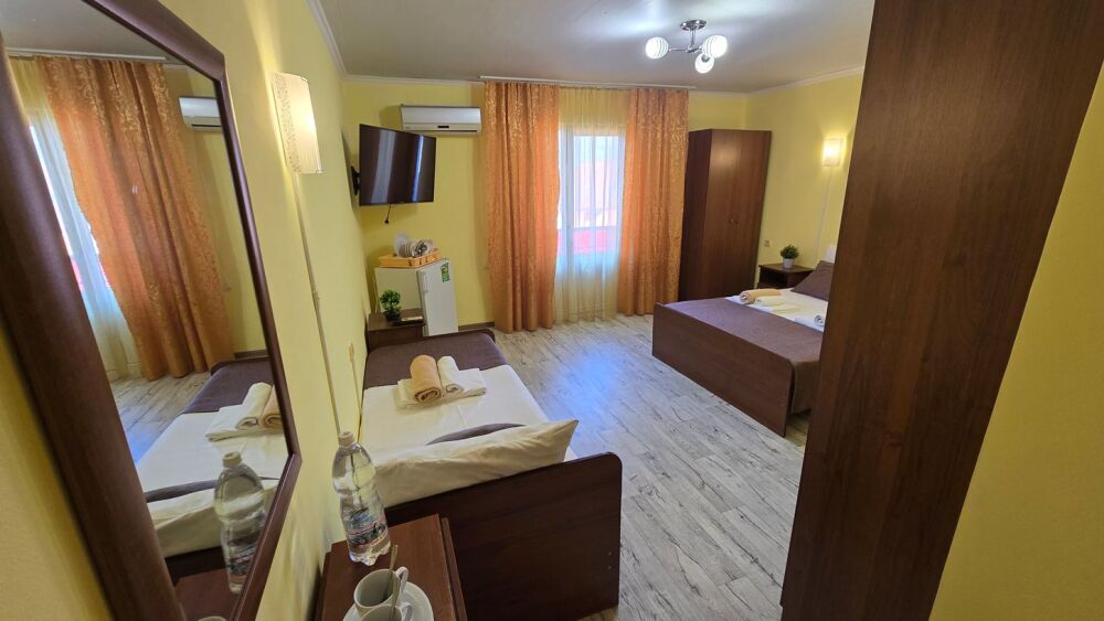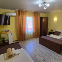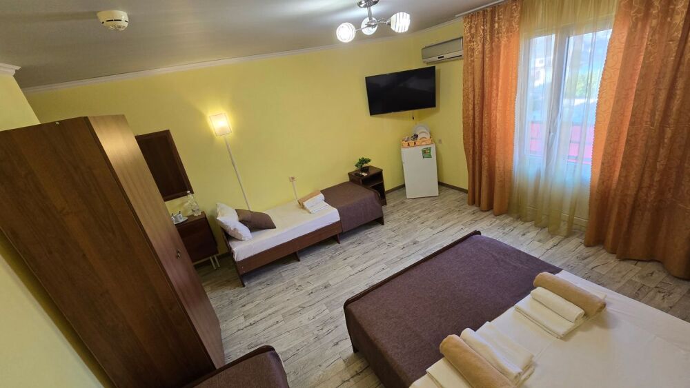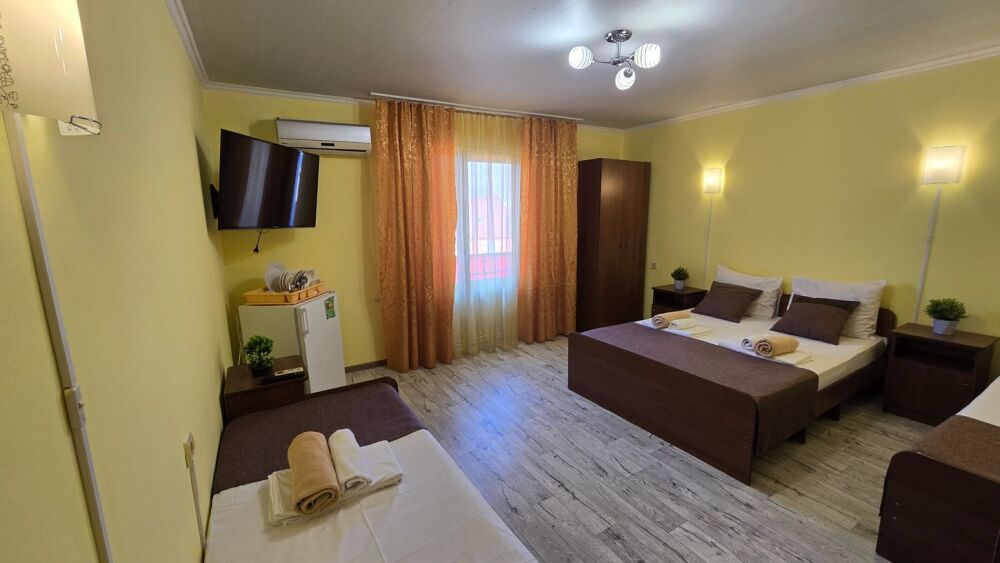 В гостевом доме 17 номеров: двух, трех и четырехместные. В номерах: двуспальная или односпальные кровати, шкаф для одежды, тумбочки, стол-книжка, телевизор, кондиционер, холодильник, сейф, фен, современный санузел с душем в номере.