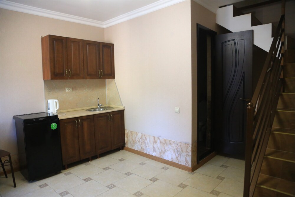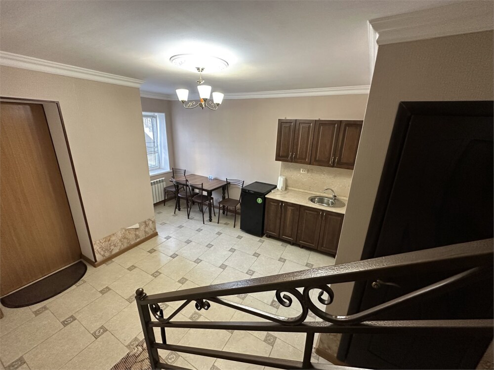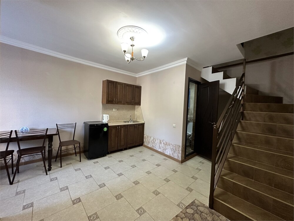 В номере своя ванная и туалет. На 1 этаже зона отдыха, кухонный уголок и обеденная зона.