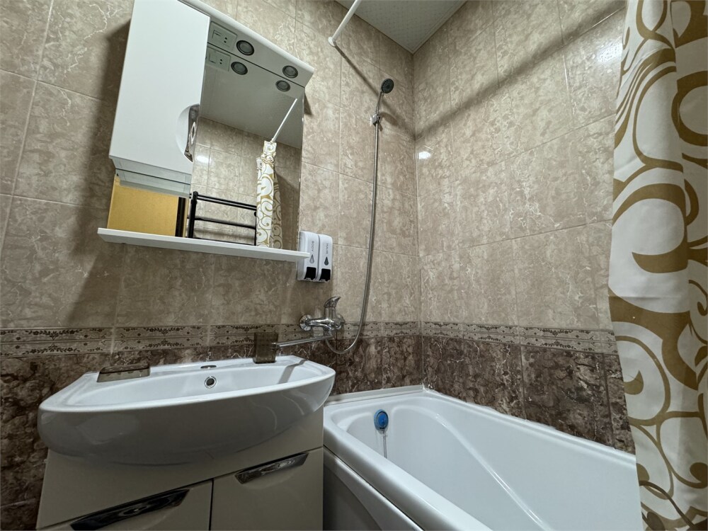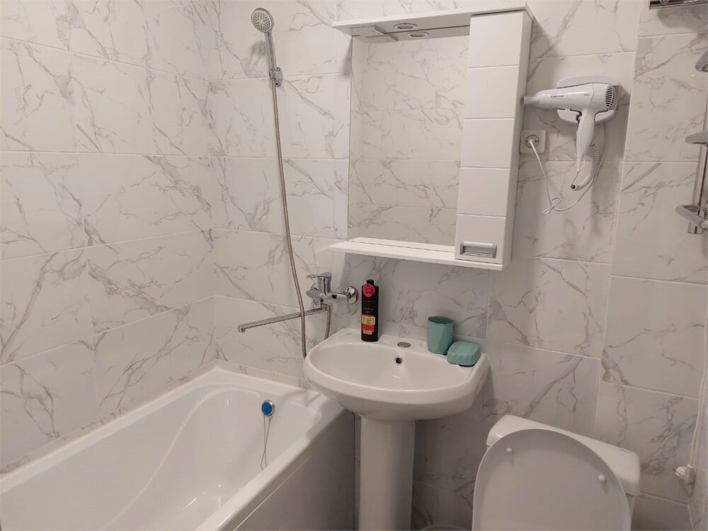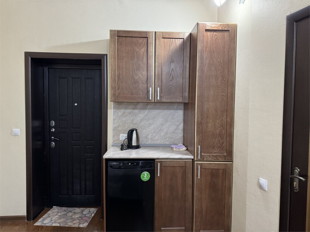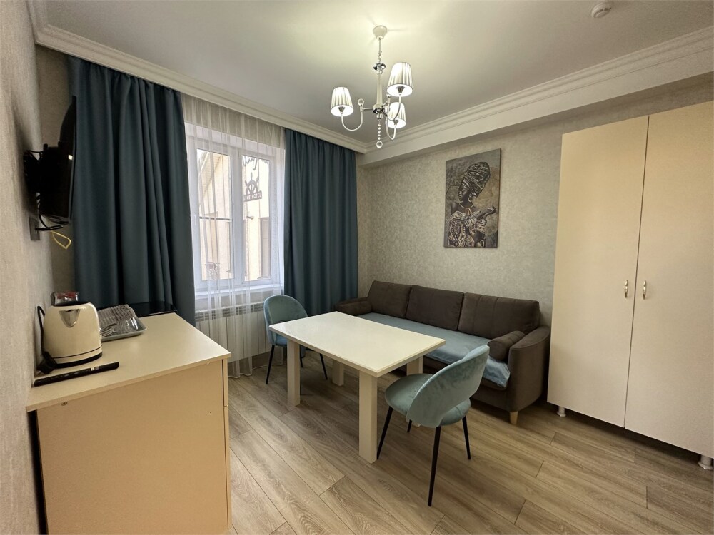 Номер как квартира-студия. В номере кондиционер, телевизор, журнальный стол, кухонный уголок, санузел с ванной.