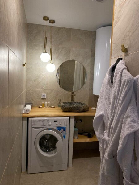 Дополнительные удобства: стиральная машина, сушилка для белья, фен, гладильные принадлежности, тёплый пол по всему дому.
