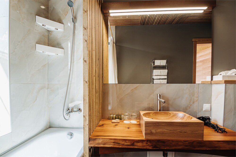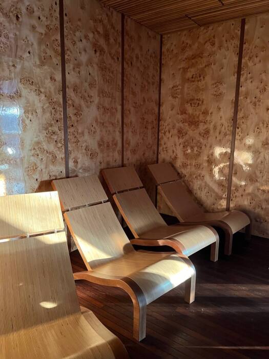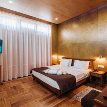 В апартаментах президентского люкса вы найдете просторную спальню с комфортной кроватью и элегантной мебелью, сауной и бочкой фурако на террасе. Один ребёнок до 3 лет — можно без отдельного спального места.