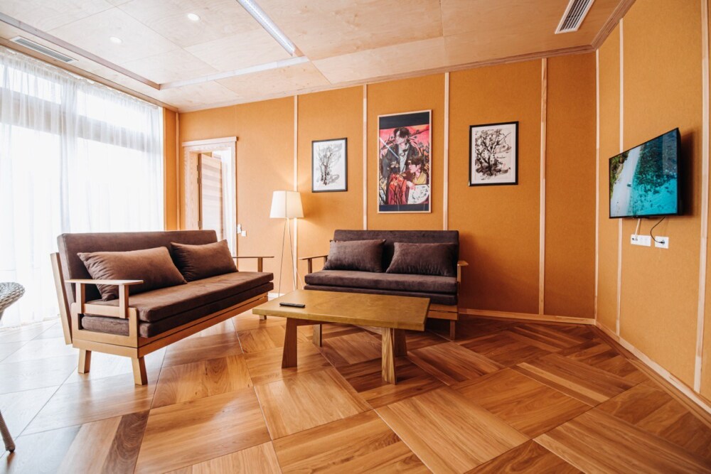 на фурако представляют собой просторные и уютный апартаменты с возможность аренды бочки фурако, обставленные в современном стиле и оборудованные всем необходимым для комфортного пребывания. В апартаментах есть большая кровать с ортопедическим матрасом, где вы сможете отдохнуть после долгого дня. Один ребёнок до 3 лет — можно без отдельного спального места.
