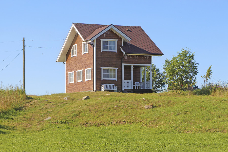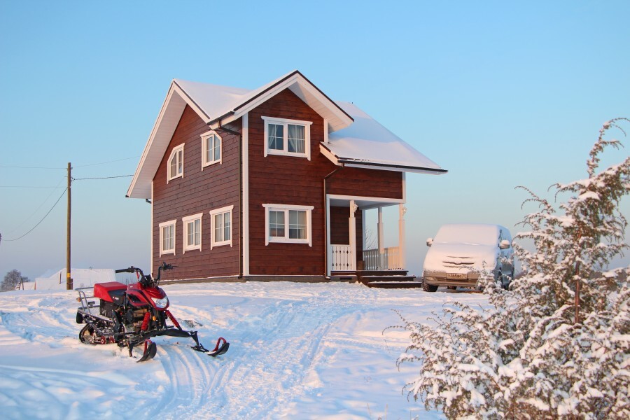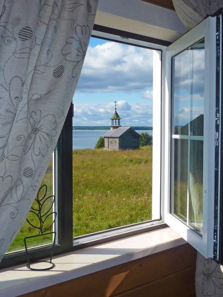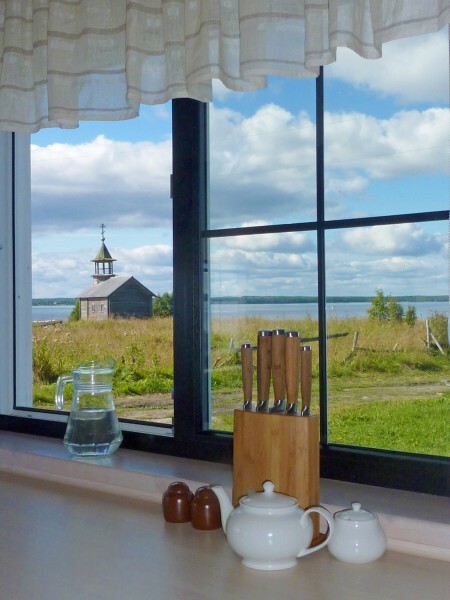 Коттедж стоит на холме, откуда открывается великолепный вид на Онежское озеро, а из панорамных окон каждый день можно любоваться древним храмом на фоне заката. В 14 километрах – знаменитый музей Кижи, куда за полчаса можно добраться на катере.