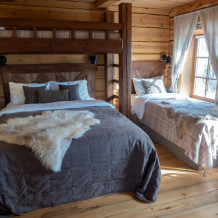Все спальные места оснащены премиальными ортопедическими матрасами. Комната оборудована стильным современным санузлом с душем.