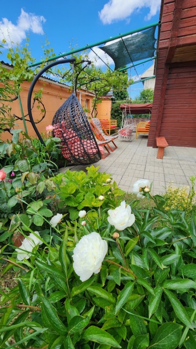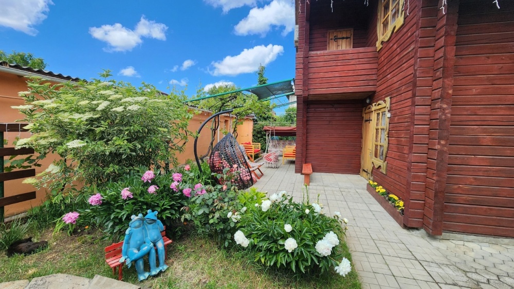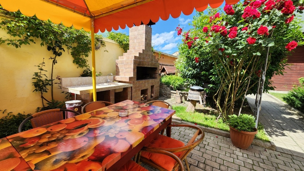 Расстояние до пляжа 700 метров. Пляж – песок. Ухоженная зеленая территория, во дворе декоративный пруд с рыбками, фонтаном и водопадом, детская площадка для малышей, мангал с коптильней, площадка для отдыха и стоянки автомобиля.