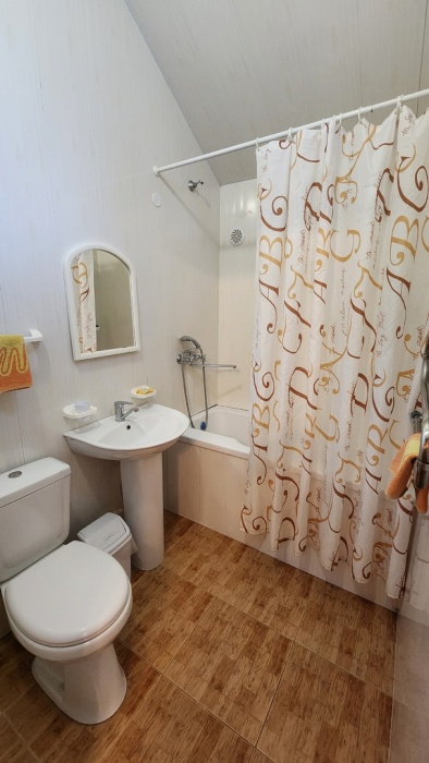 В Вашем распоряжении 4 спальни, гостиная, кухня-столовая, два санузла (душевая и ванная комната), 3 кондиционера, стиральная машина-автомат, холодильник, микроволновая печь, газплита, эфирное и спутниковое ТВ, Wi-Fi интернет, автономное отопление, постоянное холодное и горячее водоснабжение, фильтр с питьевой водой, гладильные принадлежности, постельное белье и полотенца, фен.