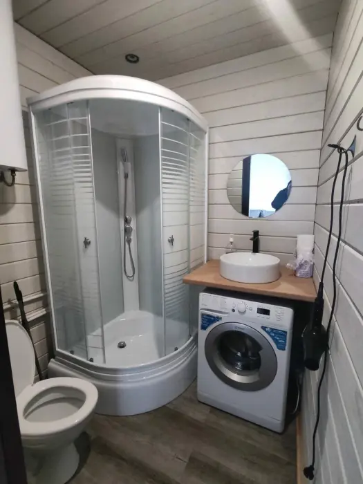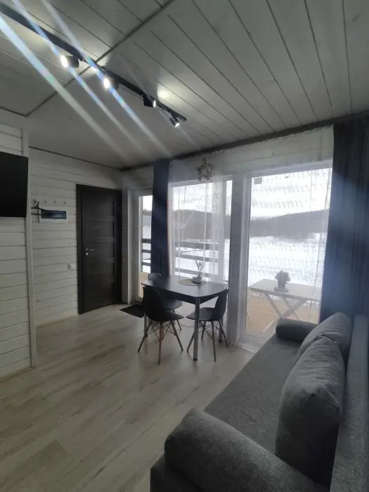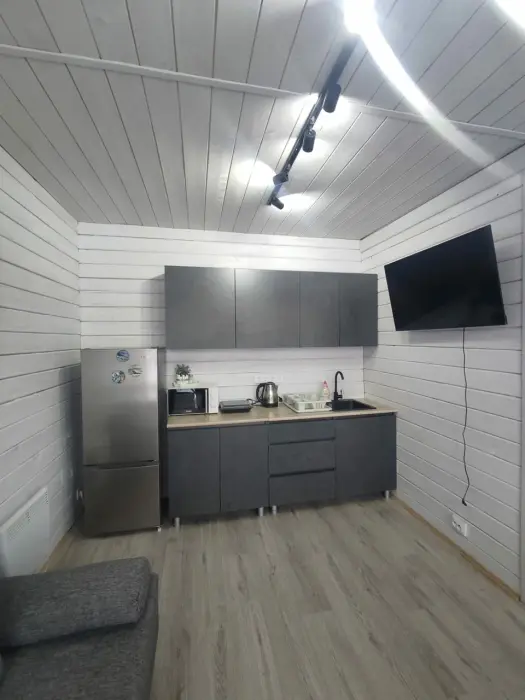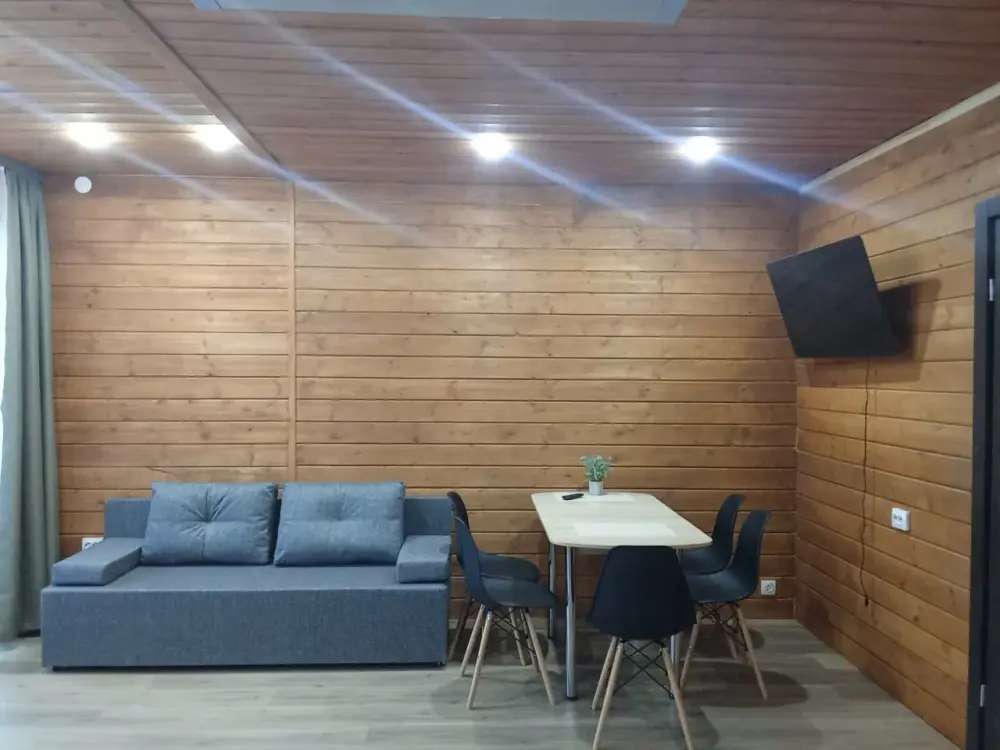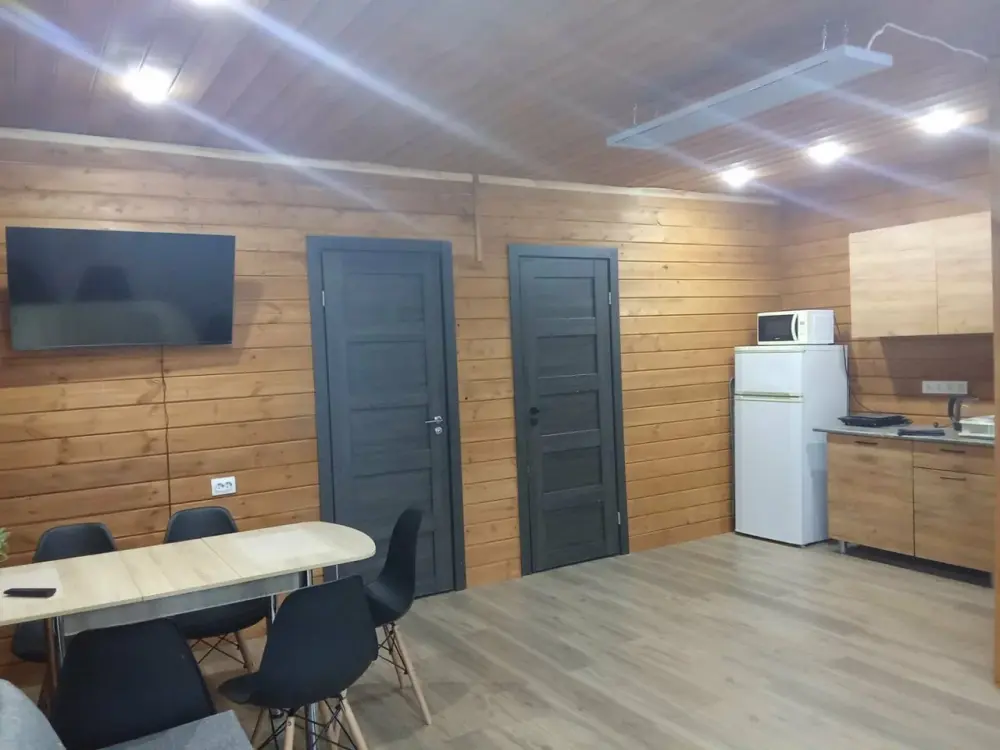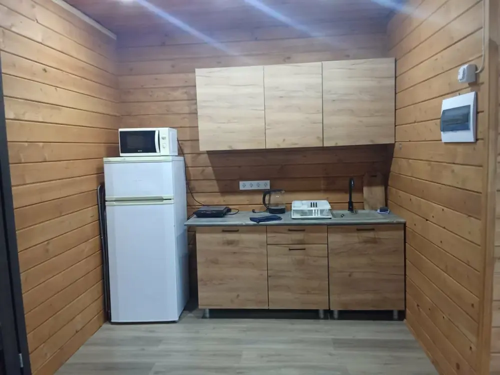 Оснащение: обогреватель, бесплатный чай в пакетиках или растворимый кофе, питьевая вода, утюг, Яндекс станция, отопление.