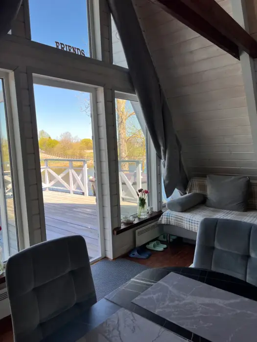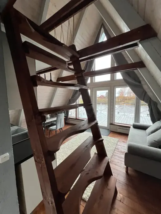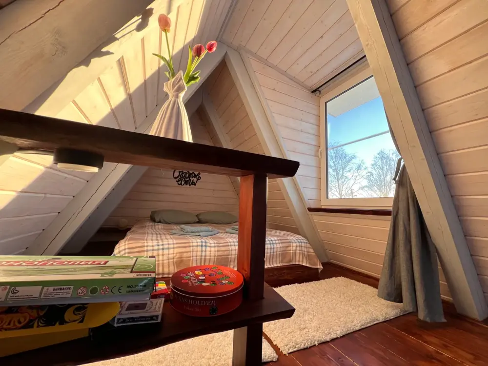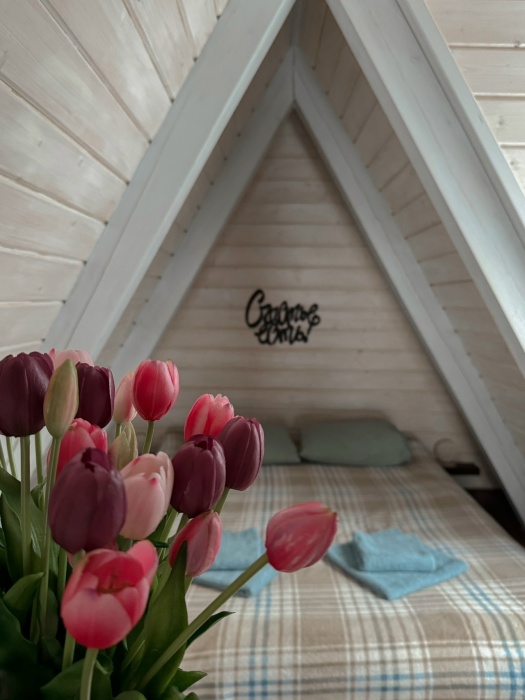 Дом рассчитан на 4 человека (двуспальная кровать на втором этаже и диван на первом).