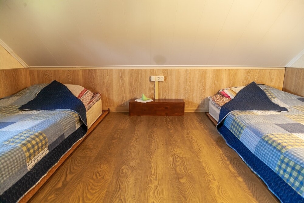На 2 этаже - 3 спальные комнаты (6 мест: в 1-местной, 2-местной и 3-местной), душ, стиральная машина и второй санузел.