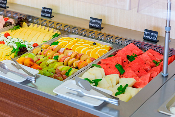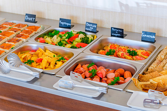 На территории работает ресторан. Тип питания «завтрак в отеле» с обслуживанием по системе «шведский стол». Обращаем Ваше внимание, что питание по системе «шведский стол» организовывается в зависимости от сезона и заполняемости отеля. При необходимости Вы можете дозаказать завтрак, обед или ужин на месте, во время или после заезда. В летнее время гости могут воспользоваться пляжным кафе, в котором представлен широчайший выбор блюд итальянской и европейской кухни.