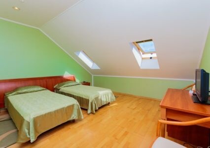 Мансардные номера без балкона, оснащены всем необходимым для комфортного отдыха.