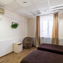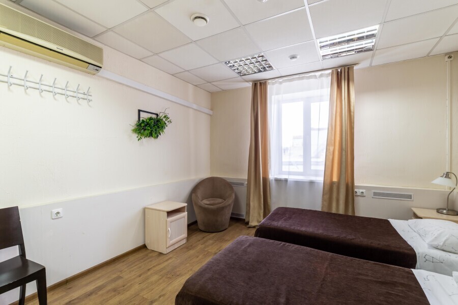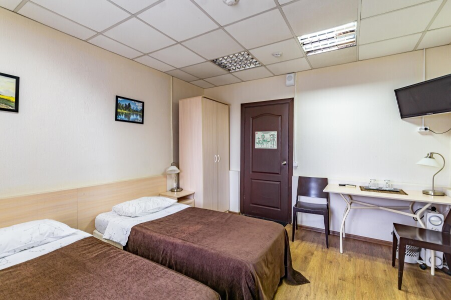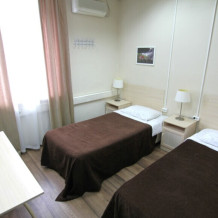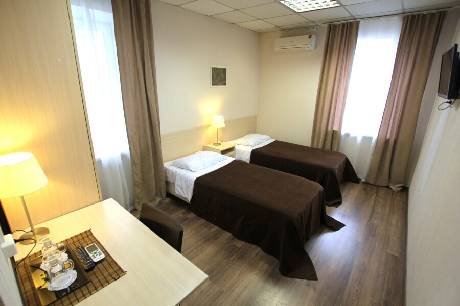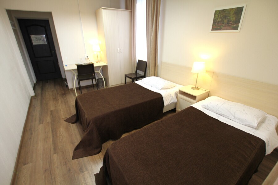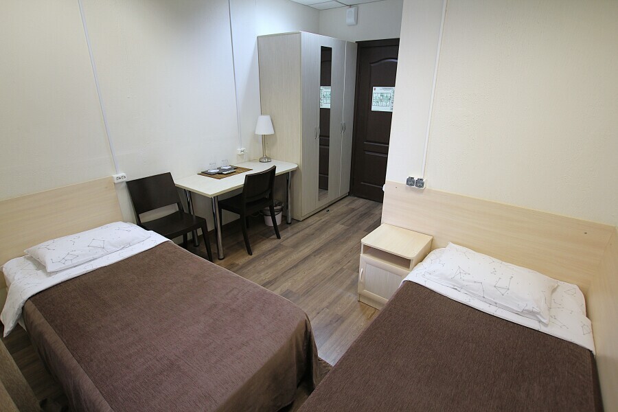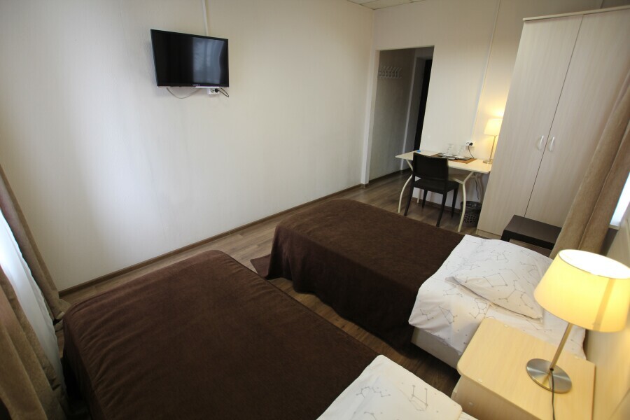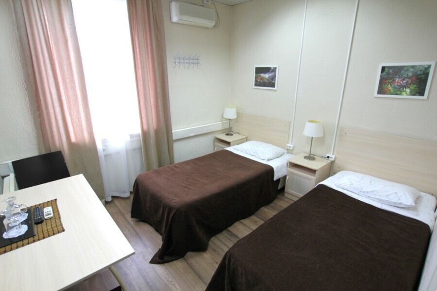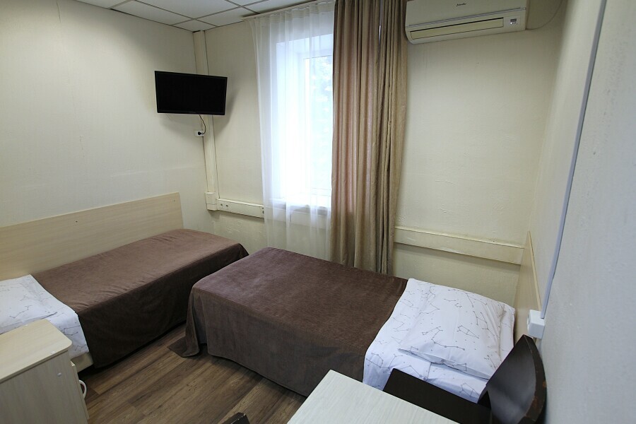 Двухместный номер с двумя кроватями. Номер оснащен телевизором, местом для хранения одежды, кондиционером, предоставляются туалетно-косметические принадлежности. Душ и туалет на этаже.