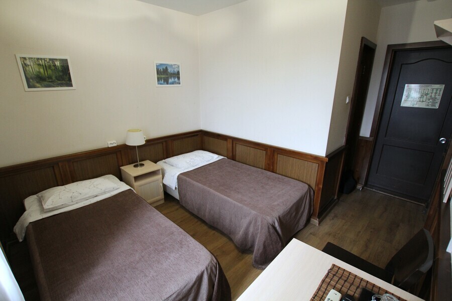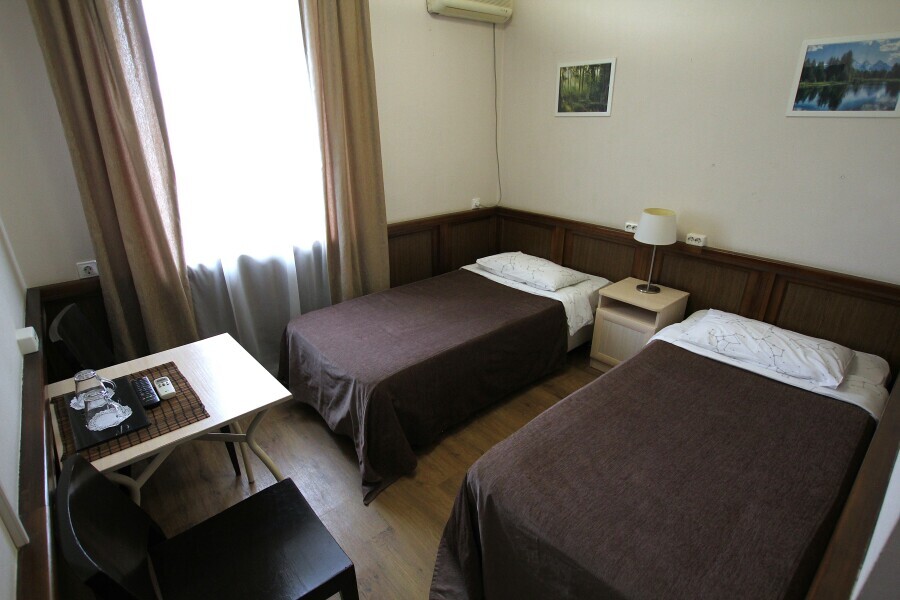 Двухместный номер с двумя односпальными кроватями, с ортопедическими матрасами для комфортного отдыха. Номер оснащен телевизором, местом для хранения одежды, кондиционером, санузлом и ванной комнатой, предоставляются туалетно-косметические принадлежности.