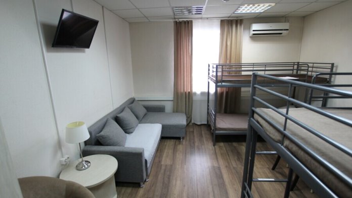 Экономичное размещение в общем номере, который оборудован ЖК телевизором, кондиционером , обогревателем. Так же в номере находятся стол и посуда для приема пищи , шкаф для размещения одежды. Индивидуальные тумбы и светильники.
