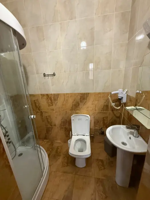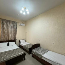 Для размещения гостям предлагаю номера вместимость от 2 до 4 гостей. Все номера оснащены: телевизором, местом для хранения вещей, кондиционером. Часть номеров оборудованы кухней. Есть санузел с душевой кабиной, предоставляется постельное бельё.