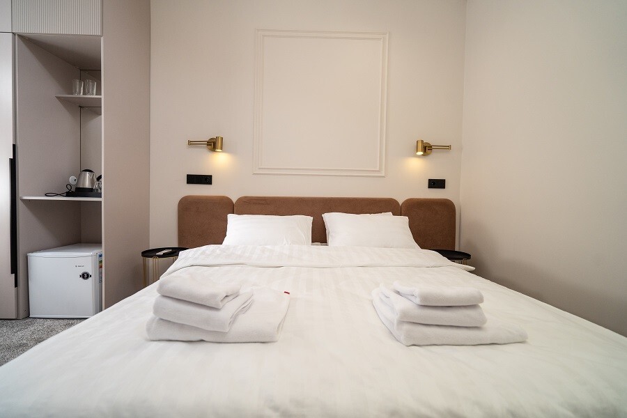 Отель включает в себя 21 номер четырех категорий комфорта. Все номера выдержанны в едином стиле пастельных тонов.