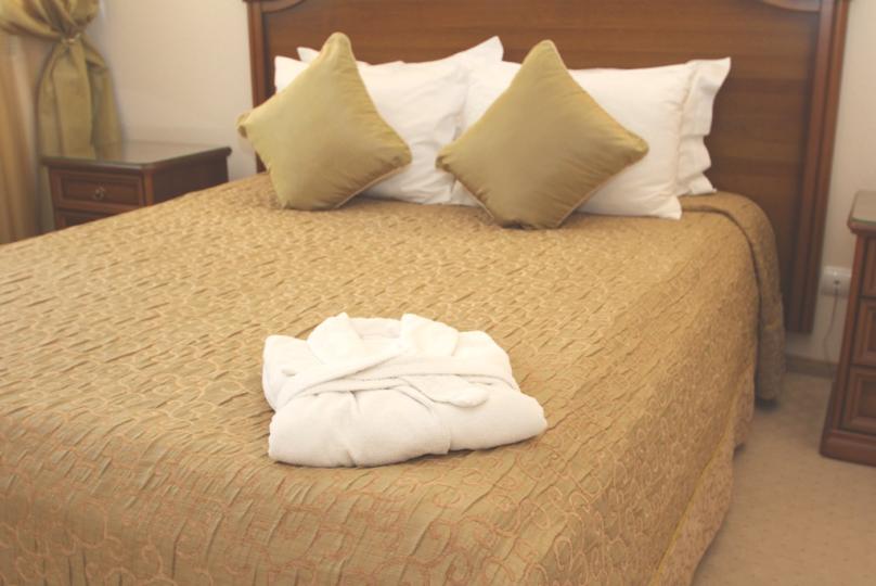 Спальня: Широкая удобная кровать, тумбочки, универсальный стол, мини-бар, телефон, кондиционер, бесплатный интернет (Wi-Fi).