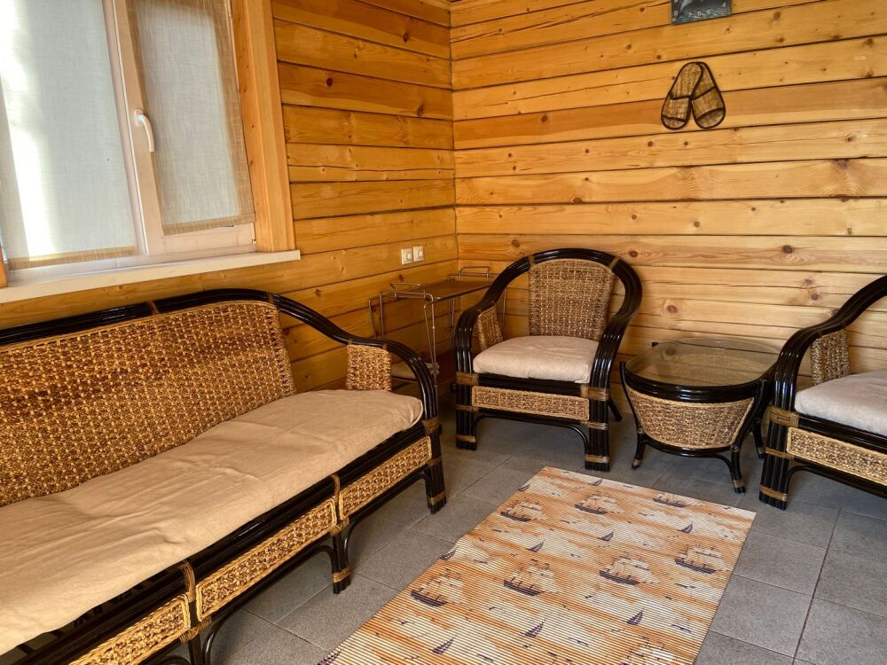 На участке имеется зона отдыха: терраса, где можно пользоваться кальяном, есть освещение (фонари) по периметру, мангал, садовые качели, для детей — игры.