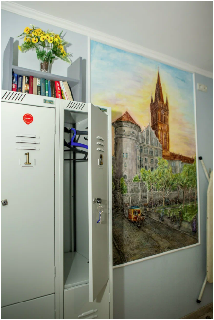 Шестиместная комната для мужчин с индивидуальными шкафчиками с замком.