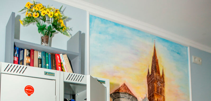 Четырехместная комната для женщин с индивидуальными шкафчиками с замком.