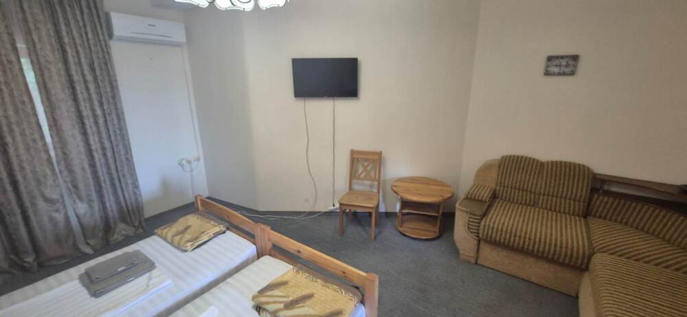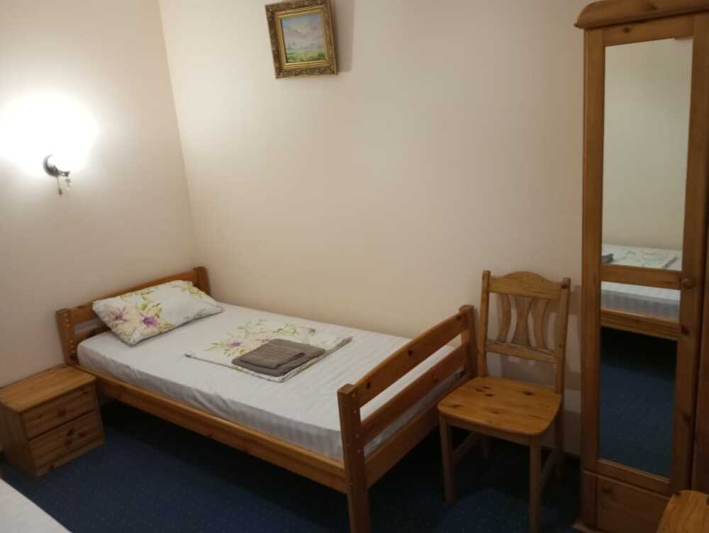 Четырехместный номер. Удобные кровати с ортопедическими матрасами, шкаф, вешалки, холодильник, собственный санузел (душ, туалет). Горячая вода, интернет постоянно