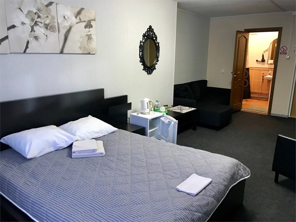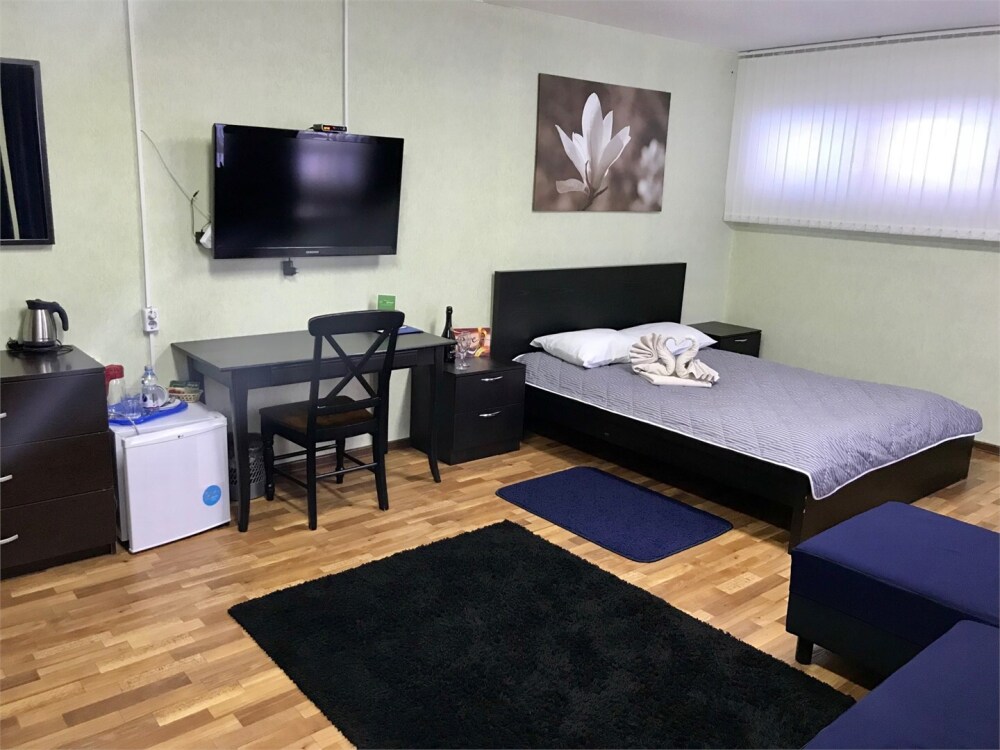В номере: душ, 2 санузла, кухня с минимальным набором посуды, холодильник, электроплита, телевизор.