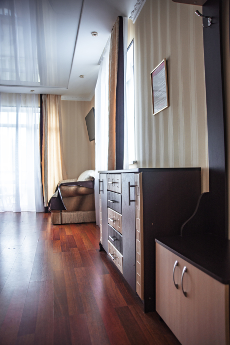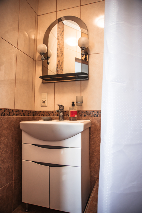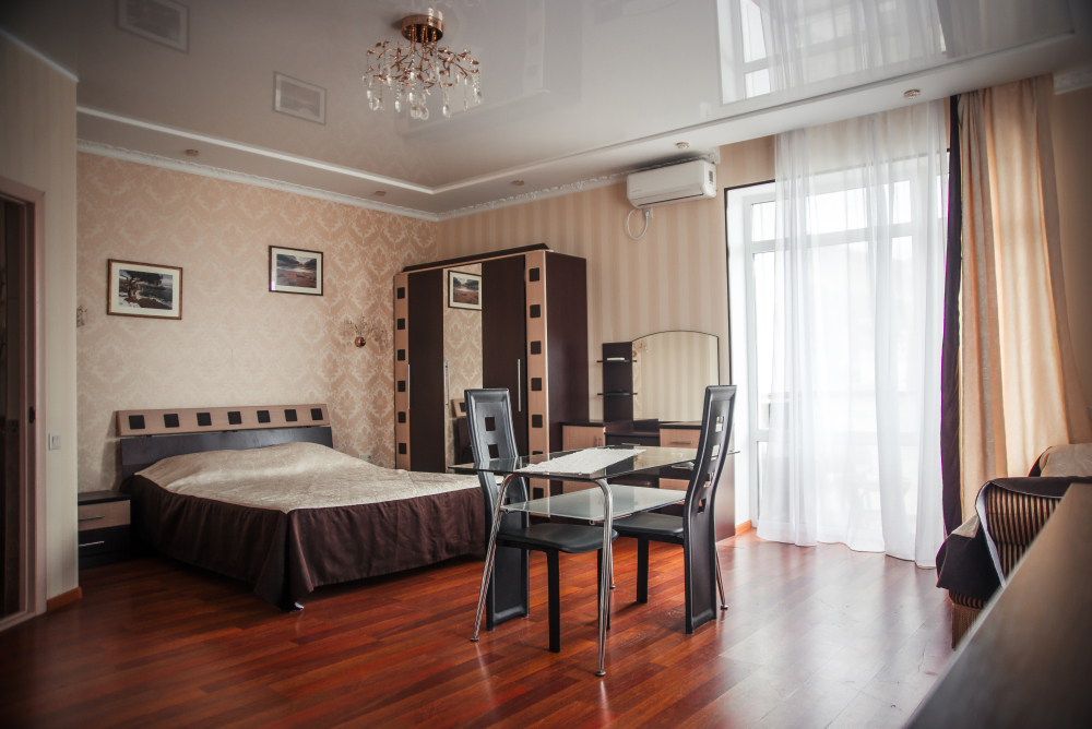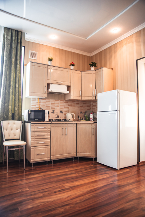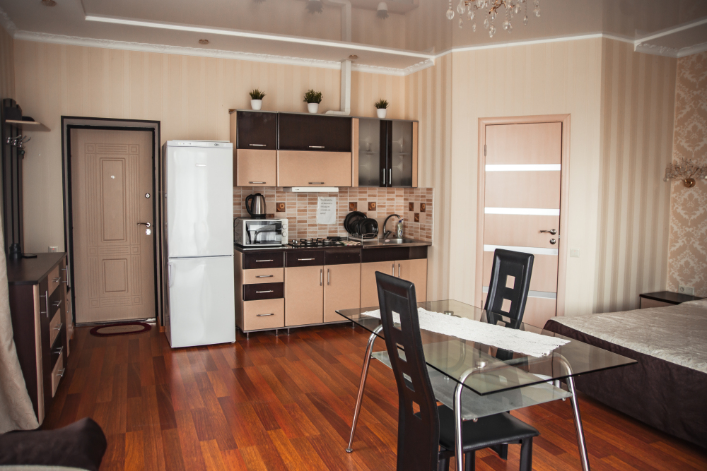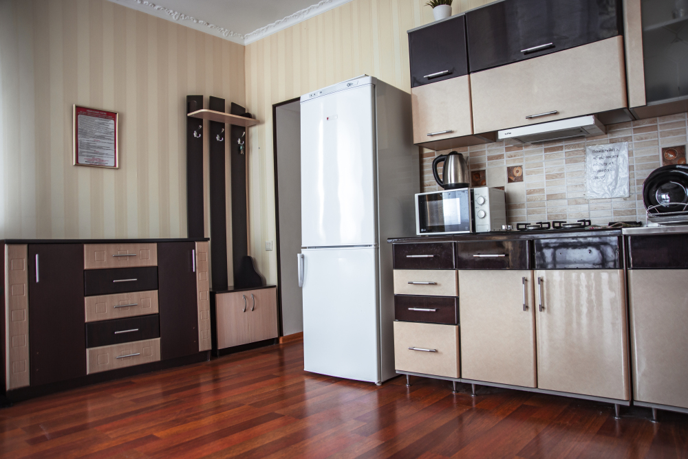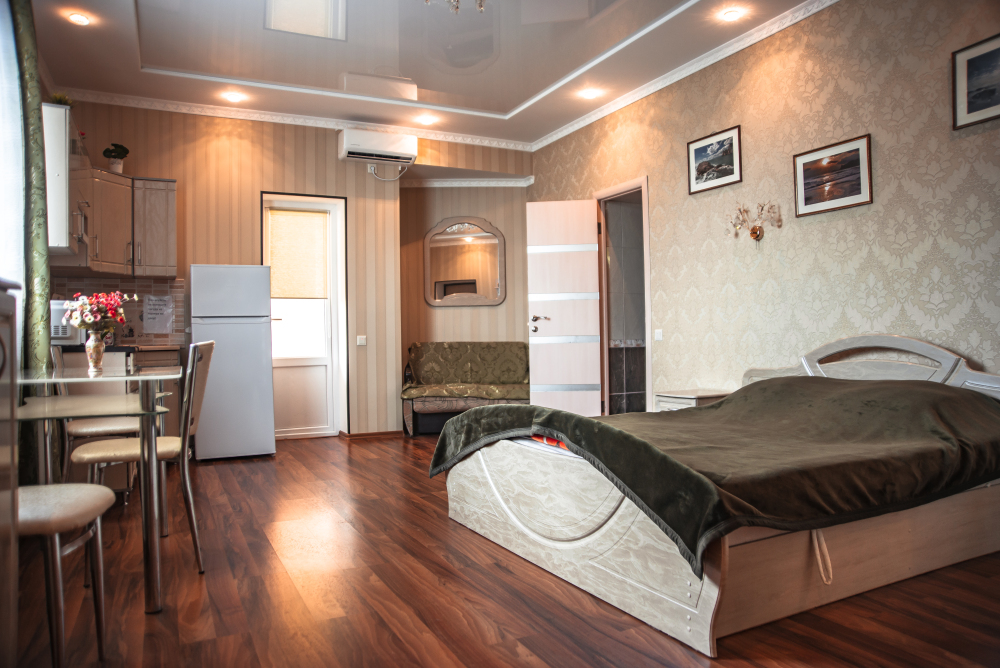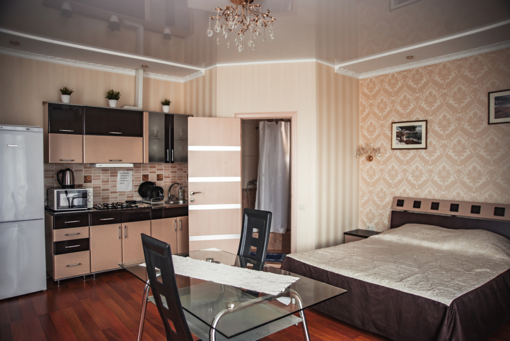 В каждом номере есть отельный санузел с постоянной подачей холодной и горячей воды, своя кухонная зона с необходимой посудой и техникой.