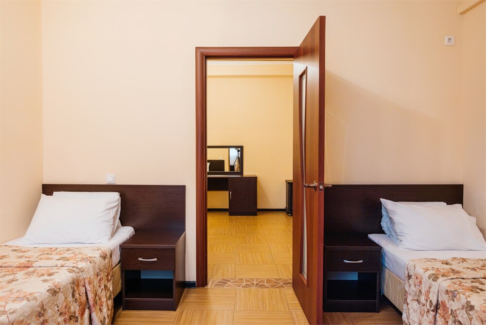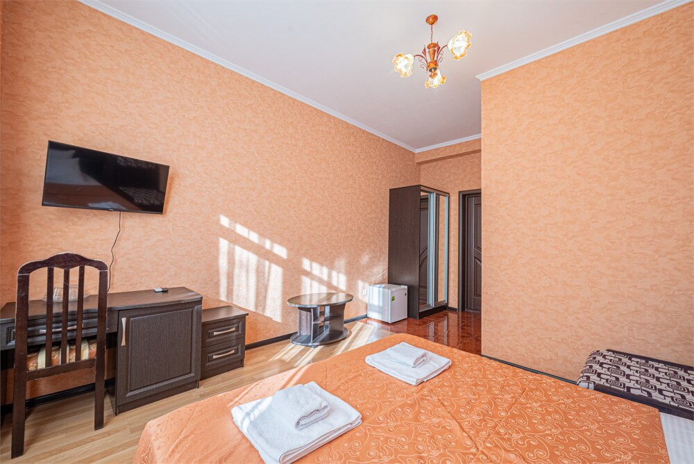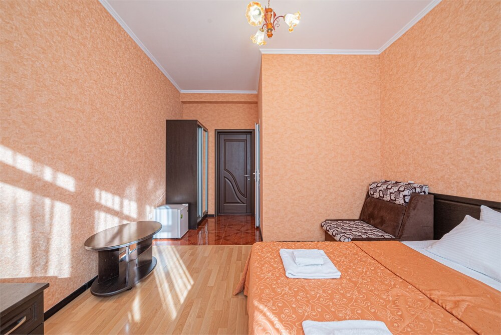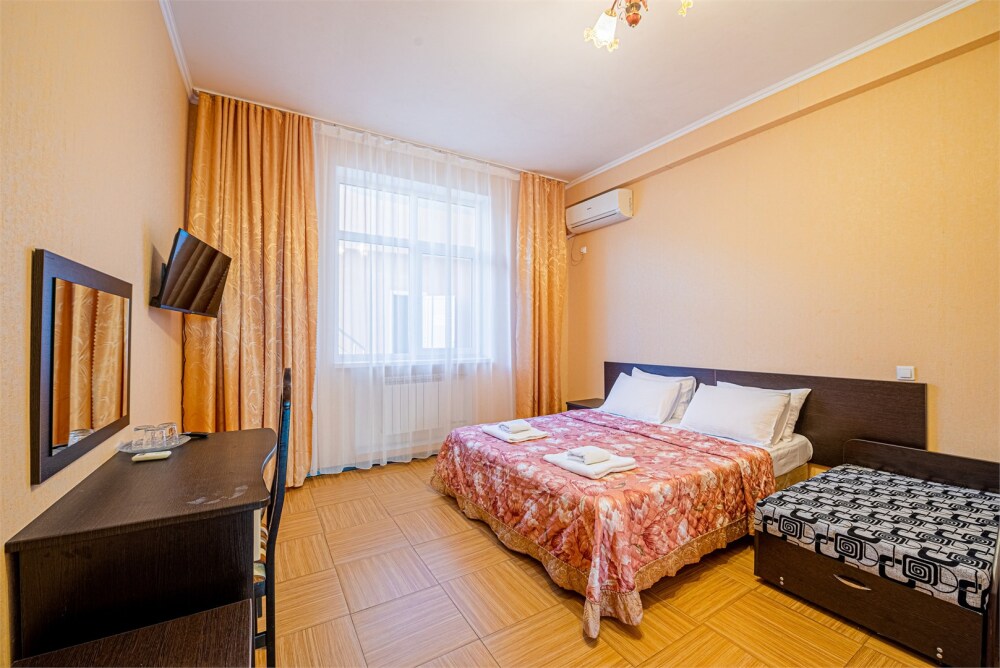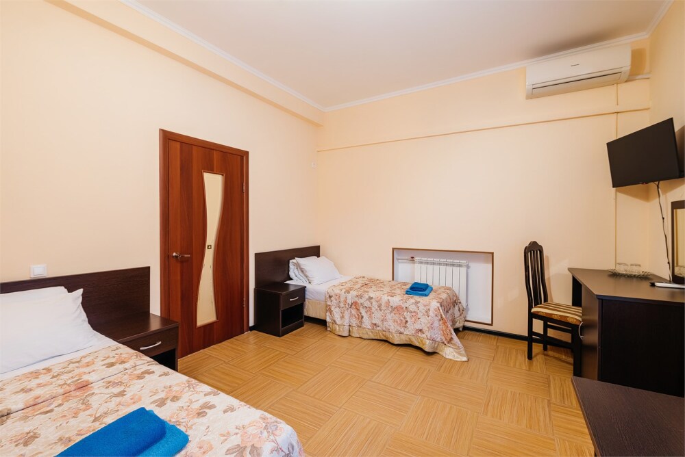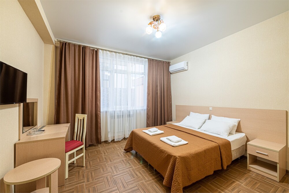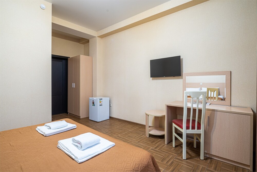 Разнообразие категорий номеров отеля позволит Вам подобрать вариант размещения максимально соответствующий Вашим потребностям. Все номера оборудованы удобными кроватями, сплит-системами, современными ТВ с плоским экраном, холодильниками, вместительными шкафами для одежды. В каждом номере индивидуальная ванная комната с набором полотенец, гигиенических принадлежностей, санузлом, раковиной и феном. Большая часть номеров с балконами, некоторые номера оборудованы кухонными зонами.