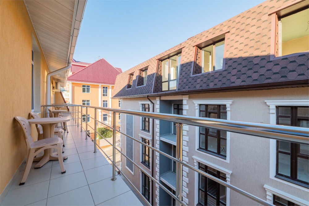Отель состоит из двух корпусов на территории каждого из которых расположены подогреваемые бассейны с пресной водой, детские площадки, мангальные зоны с необходимым инвентарем, собственная закрытая бесплатная автостоянка. Покрытие всей территории отеля стабильным беспроводным интернетом сделают Ваш отдых по-настоящему комфортным.