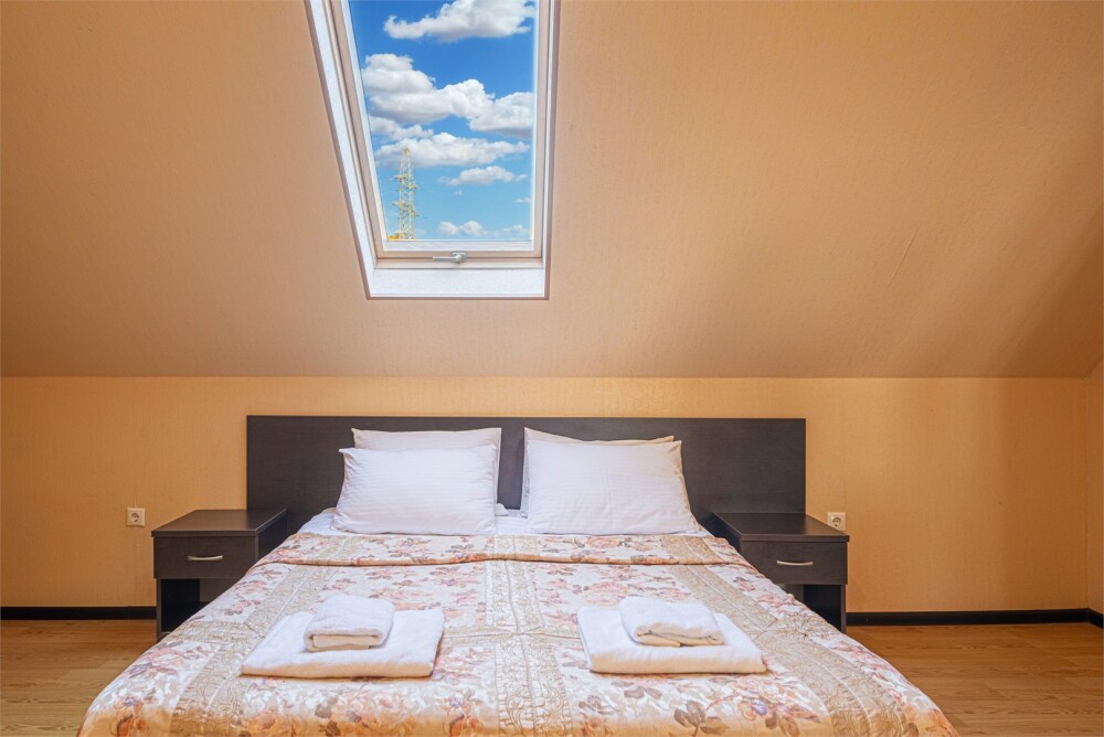 Комфортный однокомнатный номер с двуспальной кроватью и двухместным раскладным диваном.
