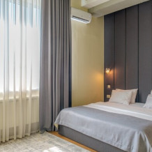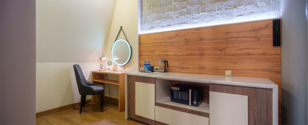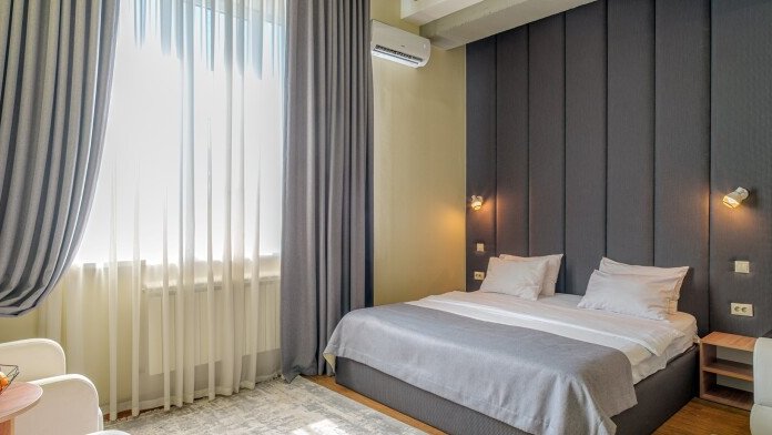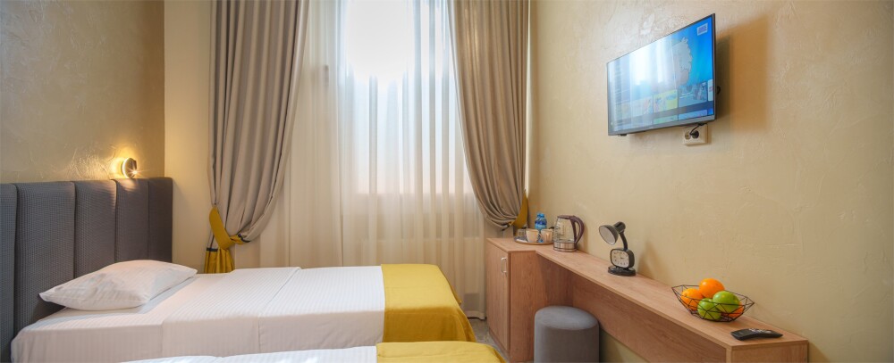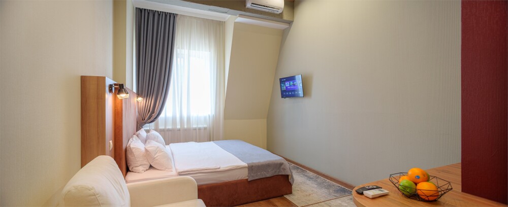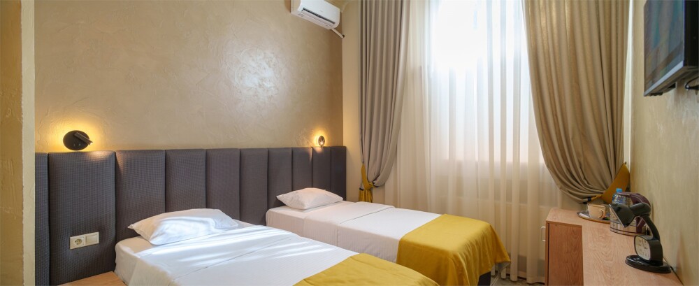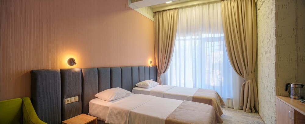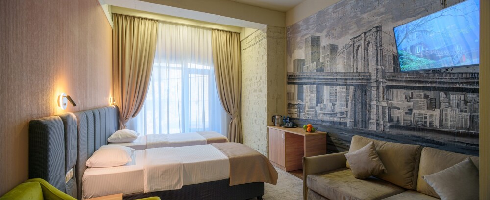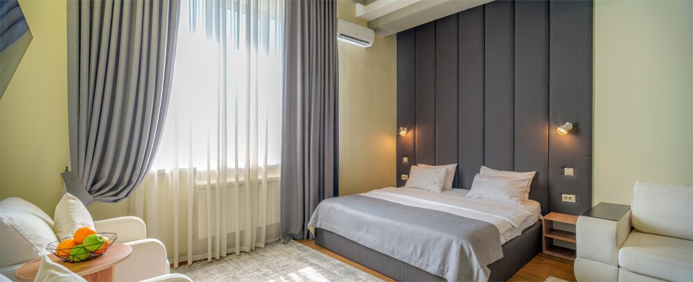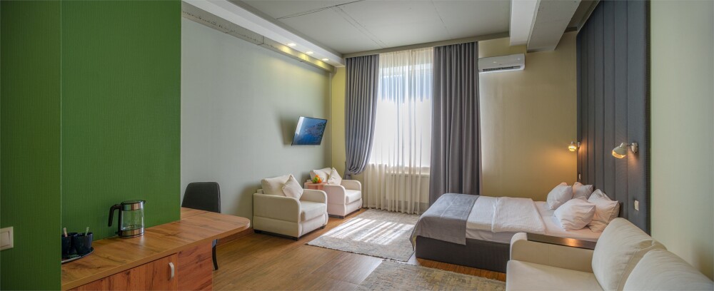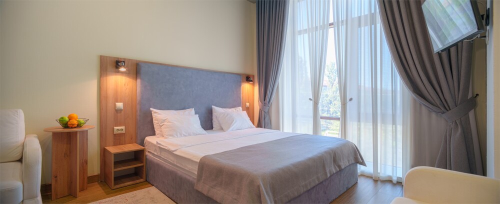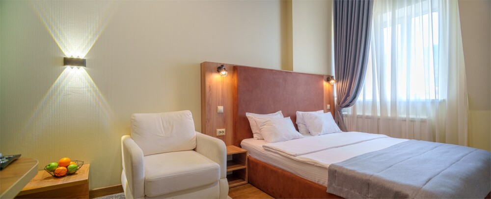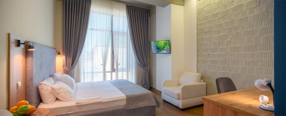 Отель предлагает просторные номера различных категорий, стильные интерьеры, а также персональное внимание к каждому гостю. Все номера оснащены телевизорами со Smart TV, будильником, бутилированной питьевой водой, москитной сеткой, затемняющими шторами. На каждом этаже расположена гладильная доска.