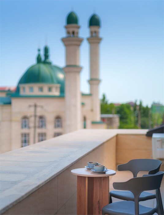 Отель Лофт 197 с видовыми номерами на гору Тарки-Тау и мечеть имени Фатима Аз-Захра, расположенный в центральной части Махачкалы.