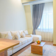 Улучшенный однокомнатный номер, состоящий из небольшой прихожей и спальной комнаты. В номере удобная современная мебель, двуспальная кровать и раскладной диван, а так же организованное рабочее пространство с письменным столом. Подходит для размещения 1-3 человек.