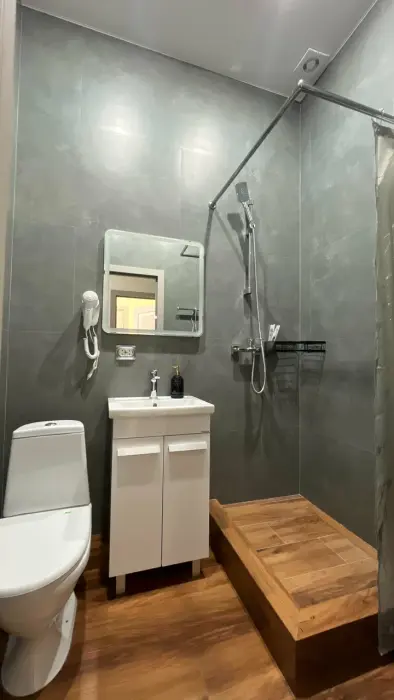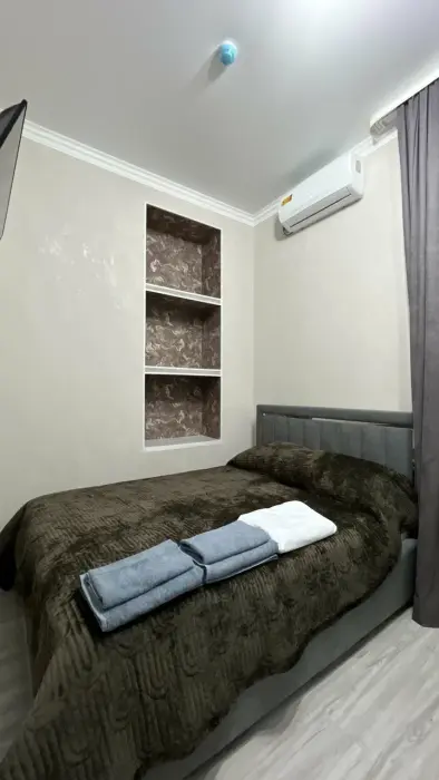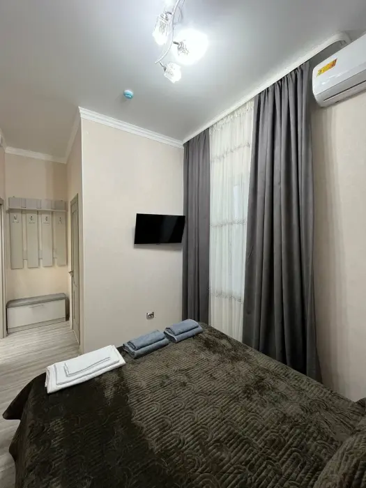 В номере: двуспальная кровать, Wi-Fi в номере, Сейф, Душ, Электрочайник, Телевизор, Кондиционер, Халат, Фен