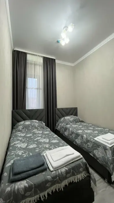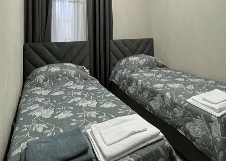 В номере: две односпальные кровати, Wi-Fi в номере, Сейф, Душ, Электрочайник, Телевизор, Кондиционер, Халат, Фен