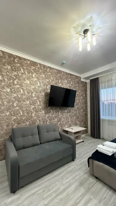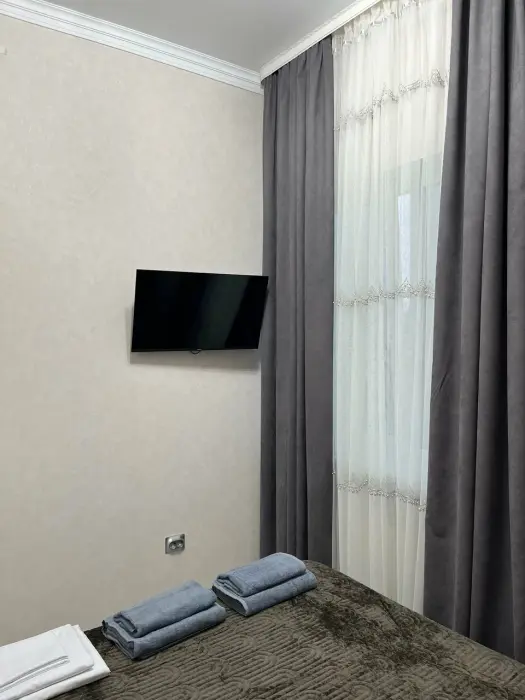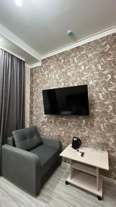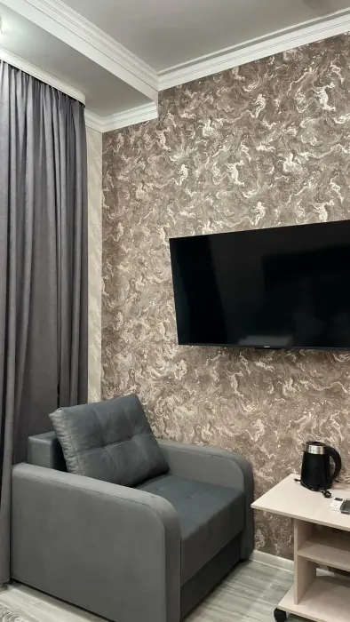 В номере: двуспальная кровать, диван, Wi-Fi в номере, Сейф, Душ, Электрочайник, Телевизор, Кондиционер, Халат, Фен