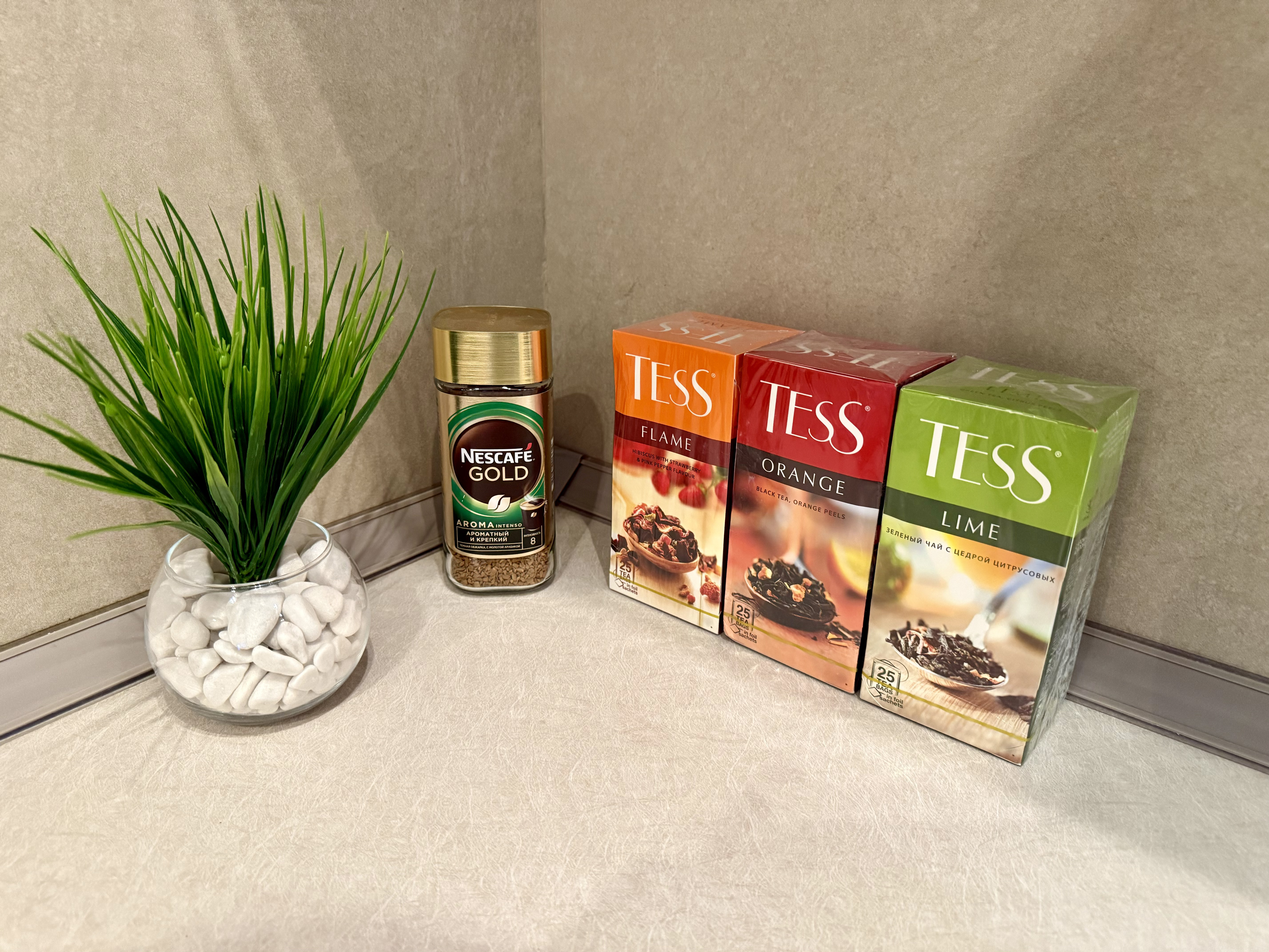 - Кофе/чай, сахар, соль, масло, специи - всё для готовки.