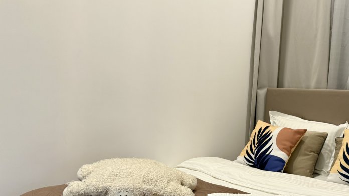 - Спальня: большая кровать 160×200 см (ортопедический матрас).
