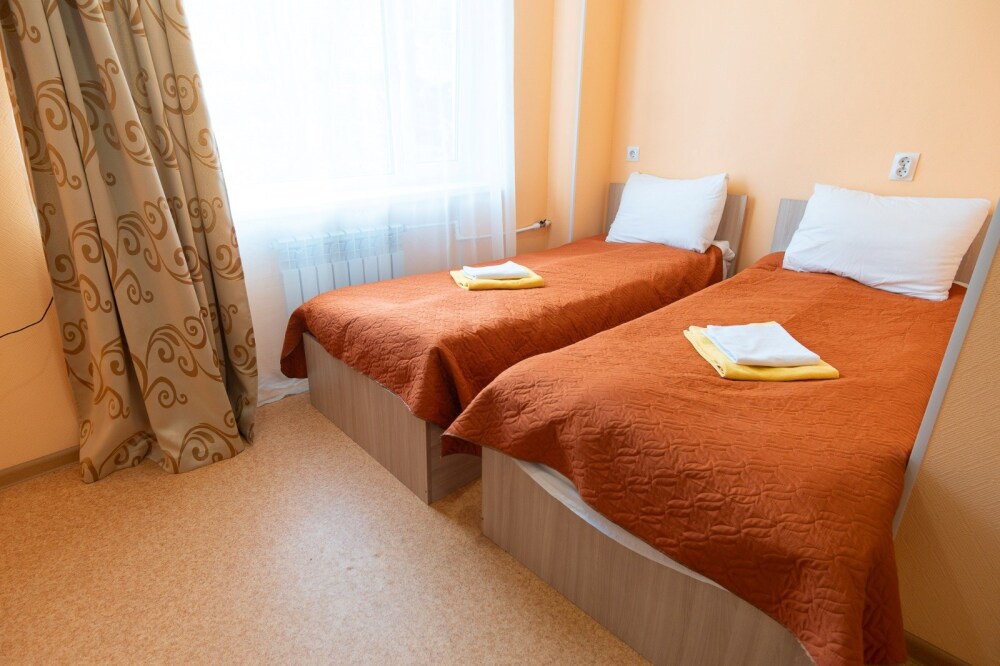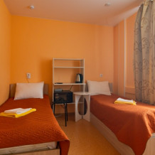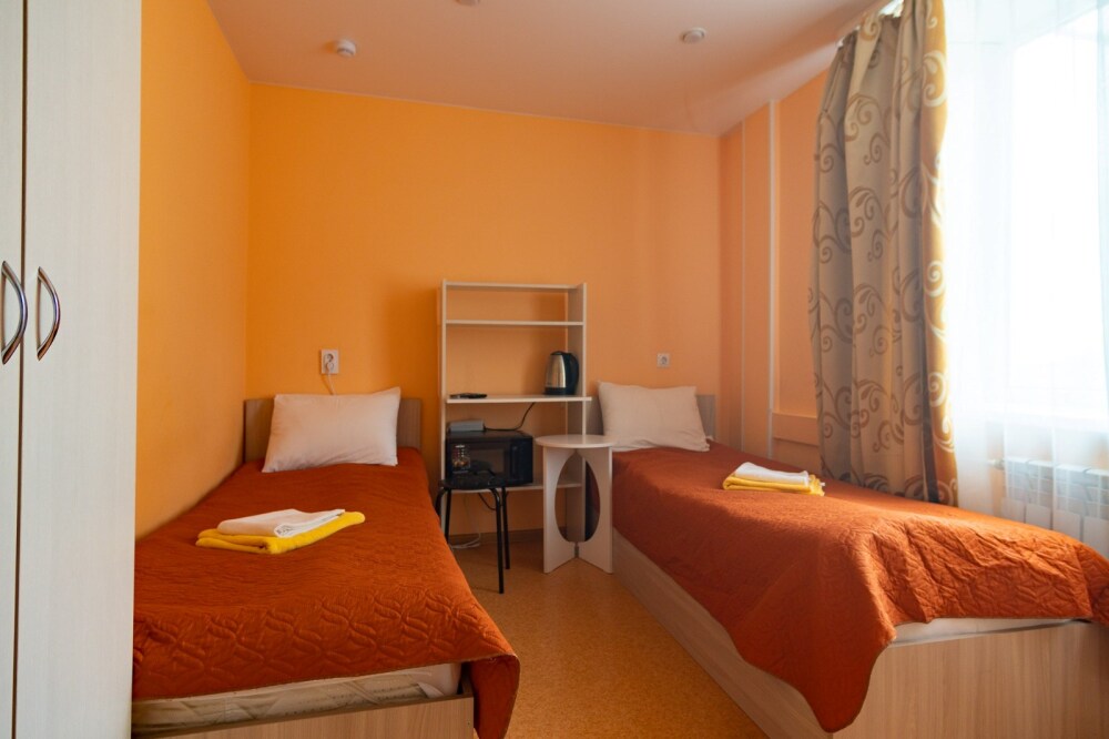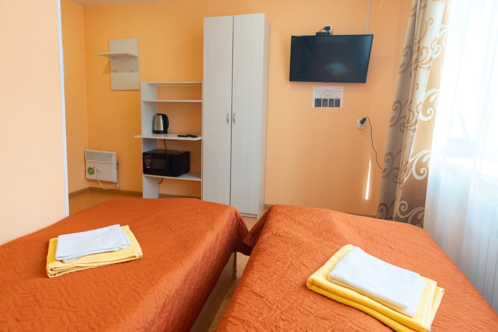 В номере находятся 2 одноместные кровати с удобными ортопедическими матрасами. Для Вашего комфорта в номере имеется чайник и микроволновая печь.