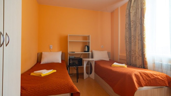 Яркий дизайн гостиницы, свежий ремонт и современная бытовая техника только расширят Ваш спектр положительных эмоций о нашей гостинице. Номера звукоизолированные и гипоаллергенные. Каждый номер оснащён индивидуальным санузлом, чайником, микроволновой печью, телевизором и односпальными кроватями с ортопедическими матрасами.