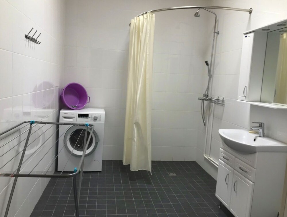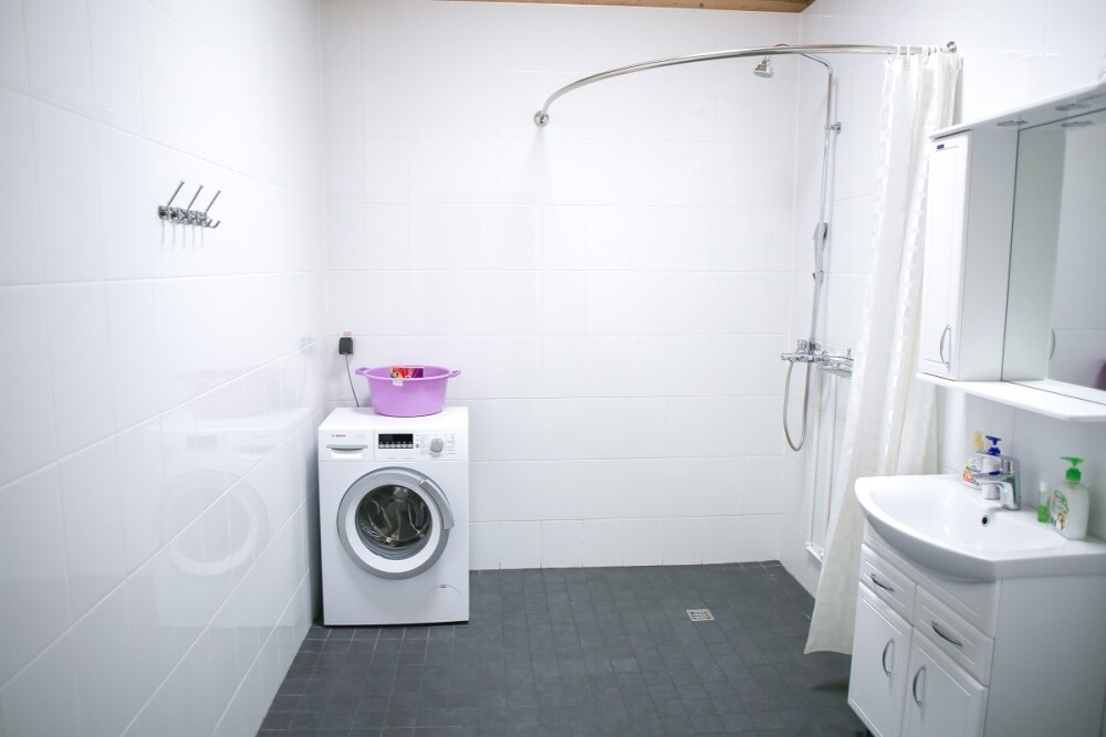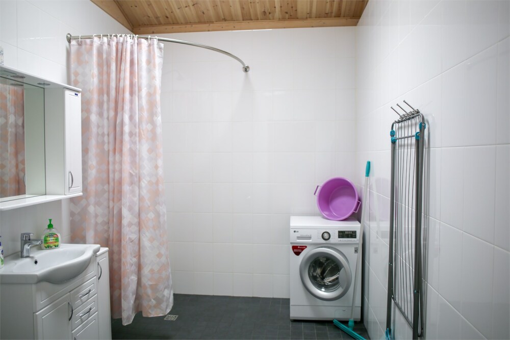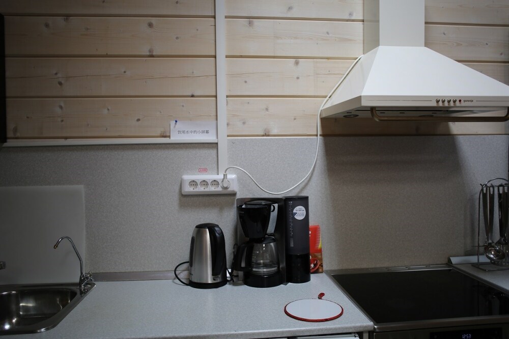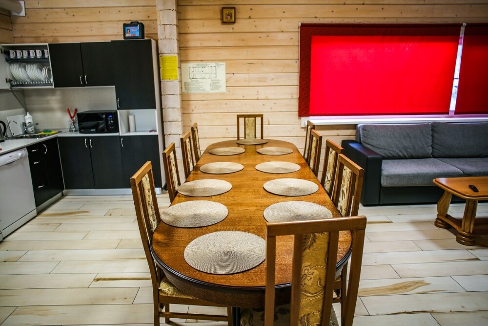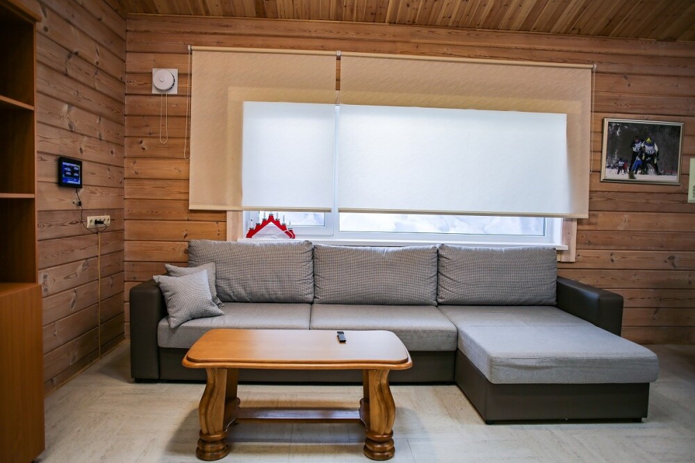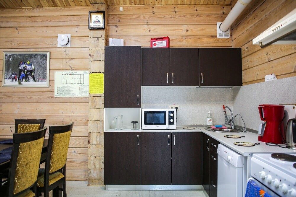 Дом оснащен уютной гостиной комнатой с диваном, большим обеденным столом, телевизором SMART, кухонным уголком, оборудованным бытовой техникой (плитой, холодильником, посудомоечной машиной, микроволновой печью, чайником, кофеваркой, кухонными принадлежностями, посудой), тремя душевыми комнатами совмещенными с сан. узлами, стиральной и сушильной машиной. Индивидуальная система отопления, система «теплый пол», а также сервисная комнатой для хранения и подготовки спортивного инвентаря. Бесплатный доступ в интернет (Wi-Fi).