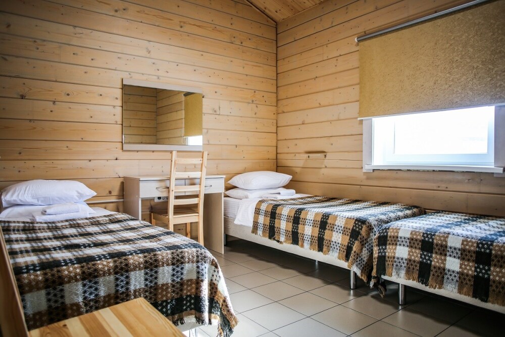 Отдыхайте на полную – прямо на территории есть спортивные объекты, специализированный спортивный магазин, прокат инвентаря, рядом – ресторан с вкуснейшими блюдами северной кухни, а также живописные места, которые точно захочется посетить.