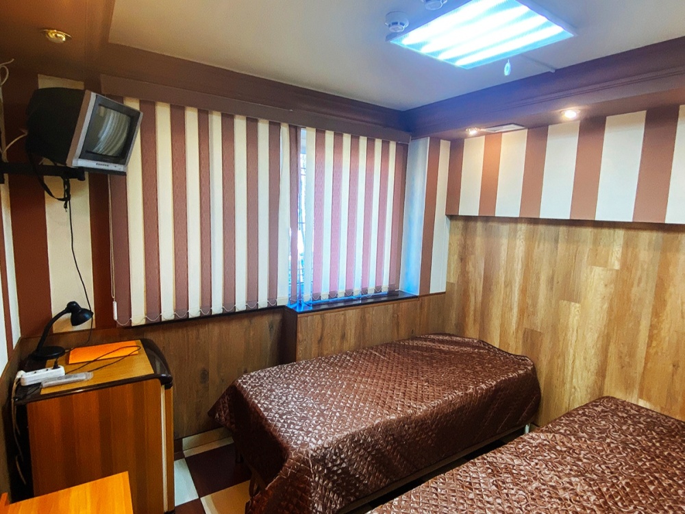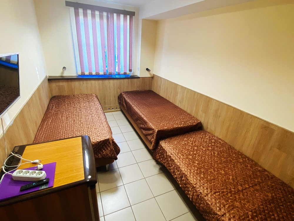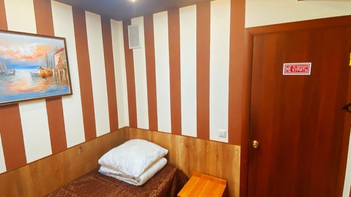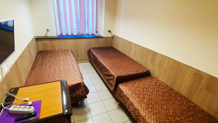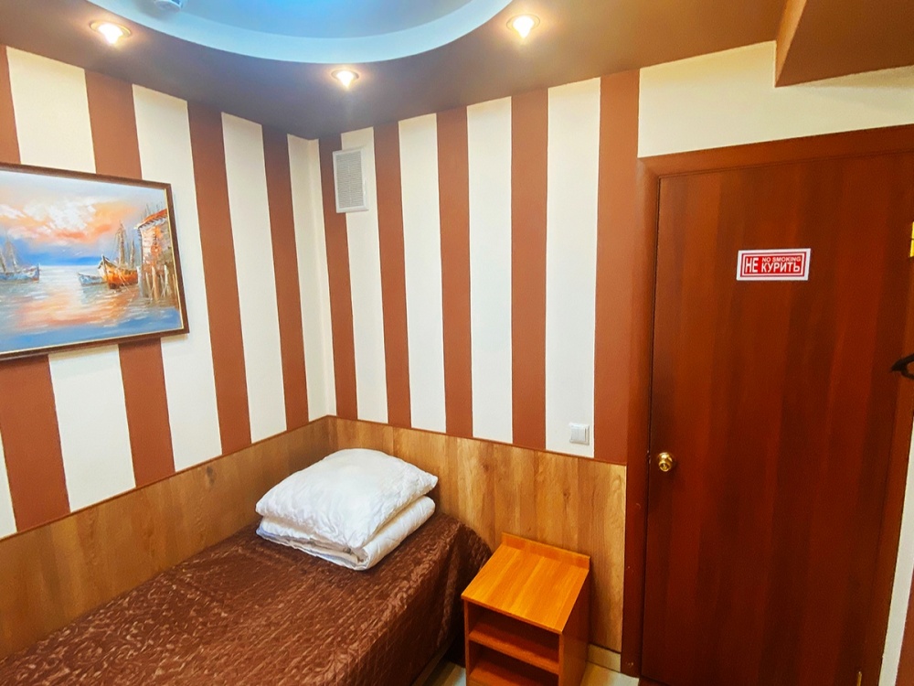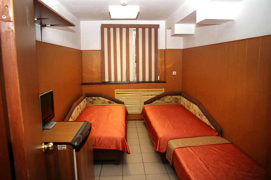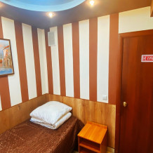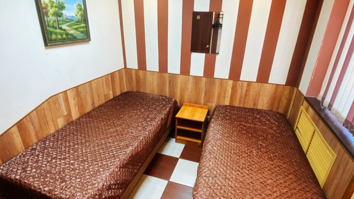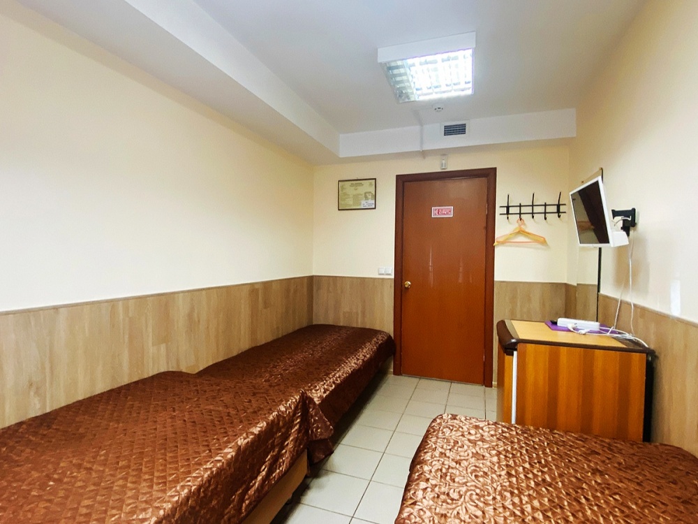 Для размещения гостям предлагают номера категорий Стандарт. Каждый из них оборудован: кроватью, прикроватными тумбами, телевизором и холодильником. Душевые и туалетные комнаты — общие на этаже.