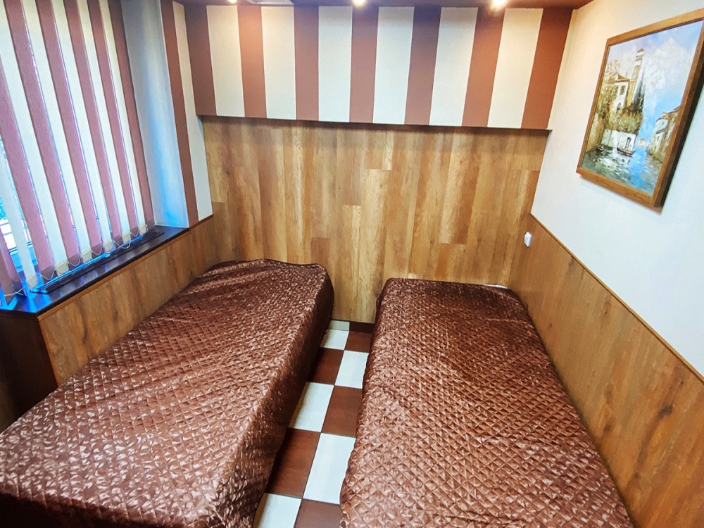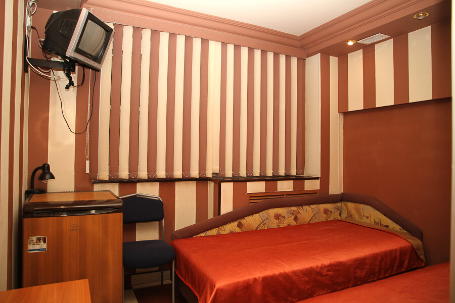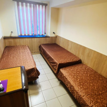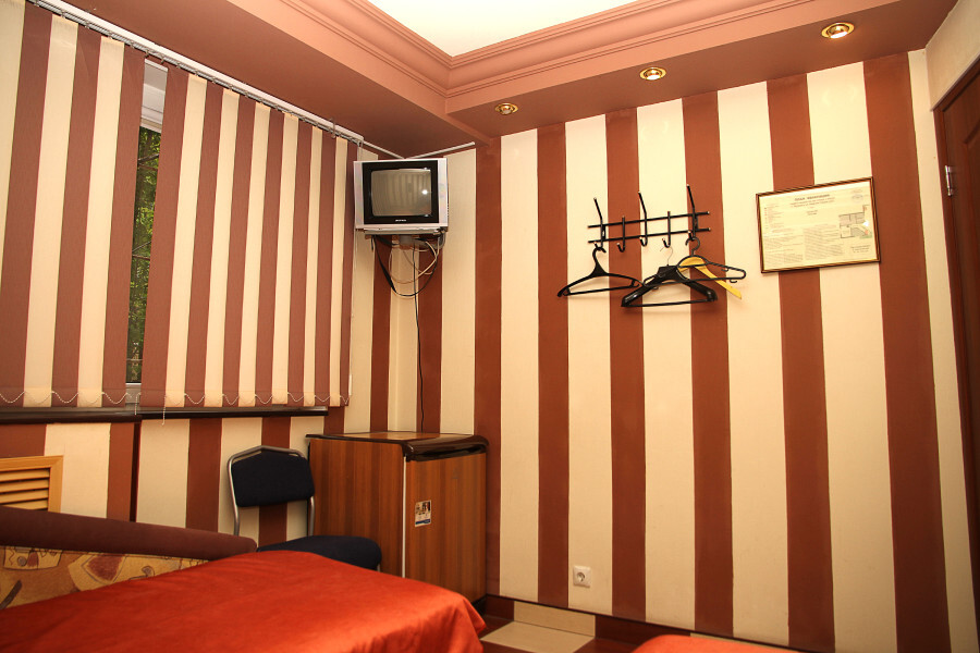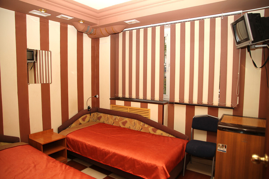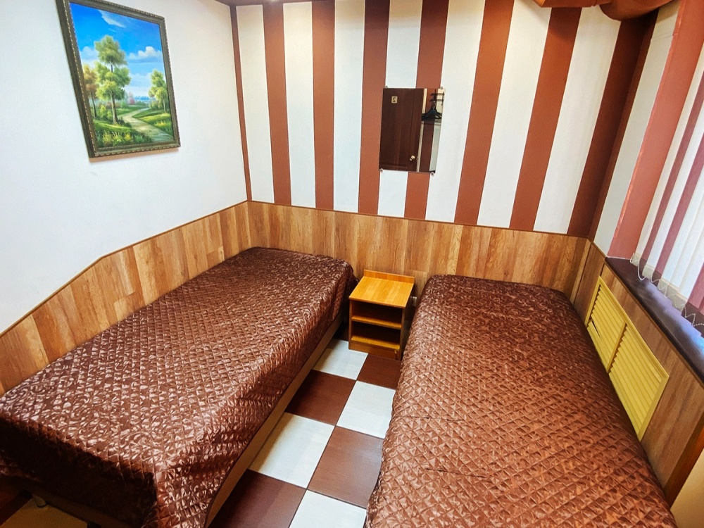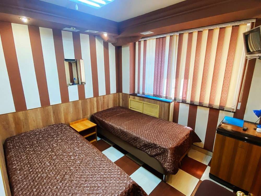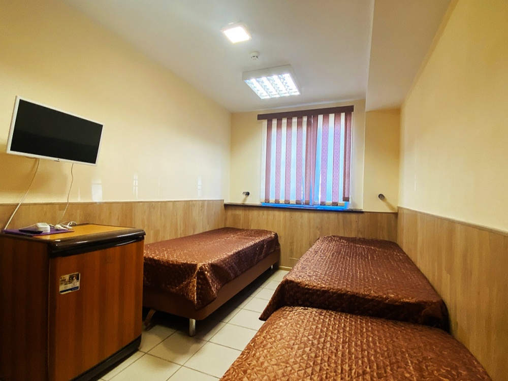 Для размещения гостям предлагают номера категорий Стандарт. Каждый из них оборудован: кроватью, прикроватными тумбами, телевизором и холодильником. Душевые и туалетные комнаты — общие на этаже.