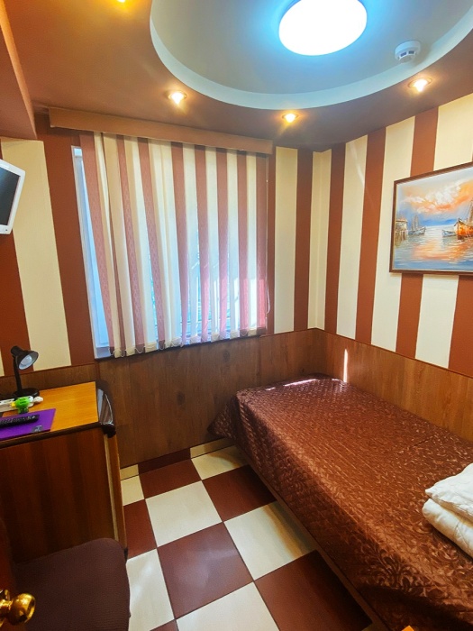 В номере односпальная кровать, холодильник, телевизор, WIFI. 2 душа и 2 туалета на этаже.