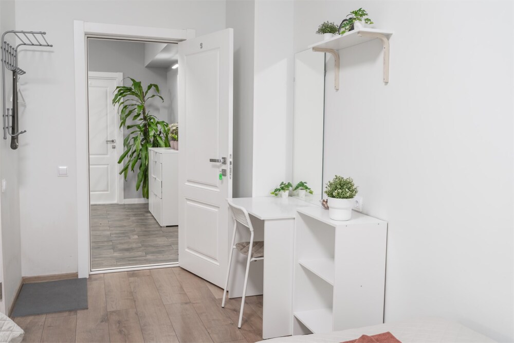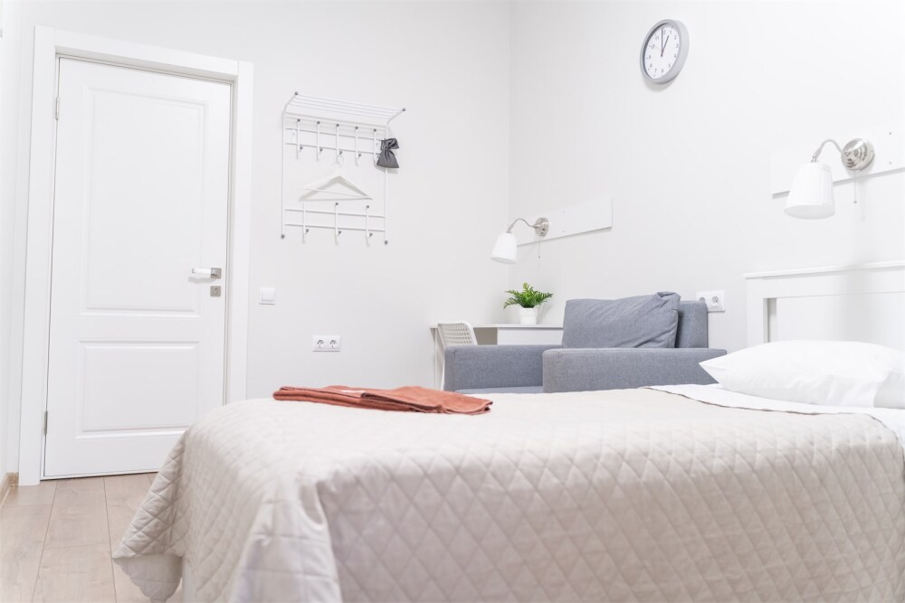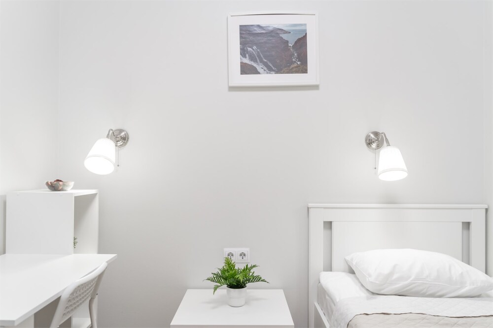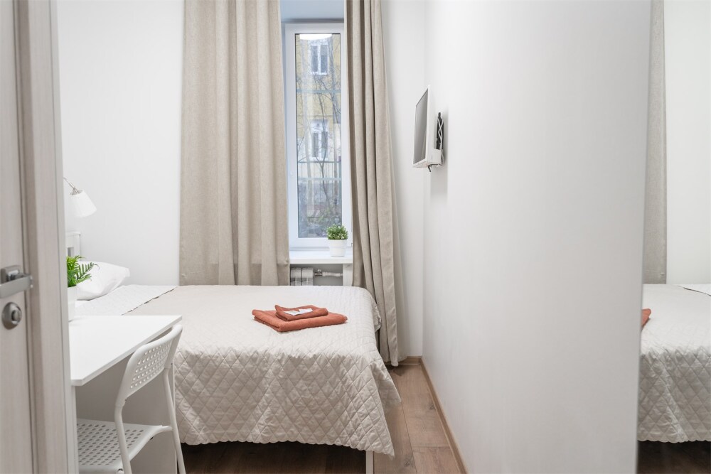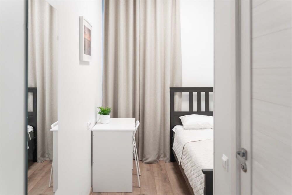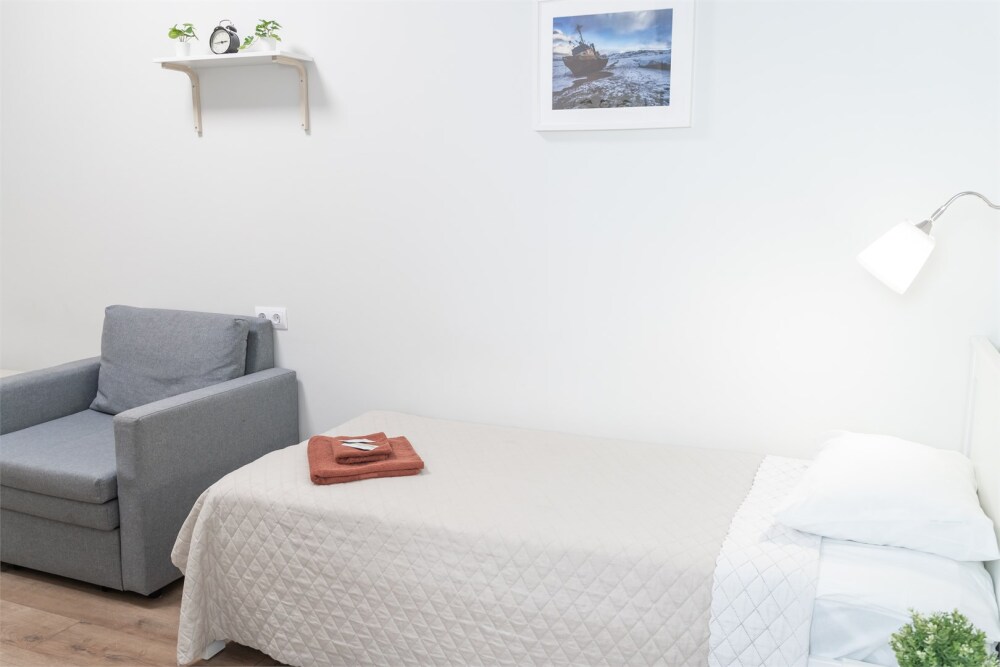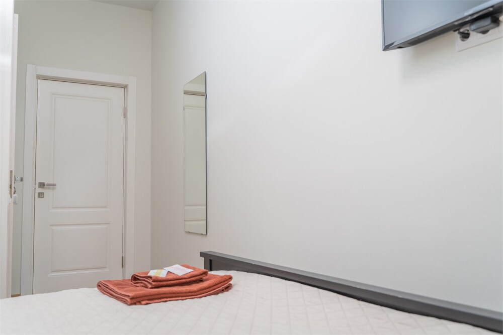 Уютный номер меблирован удобной односпальной кроватью. Номер постоянно отапливается. В номере собственная ванная комната. Также в распоряжении гостей кухня с зоной отдыха.
