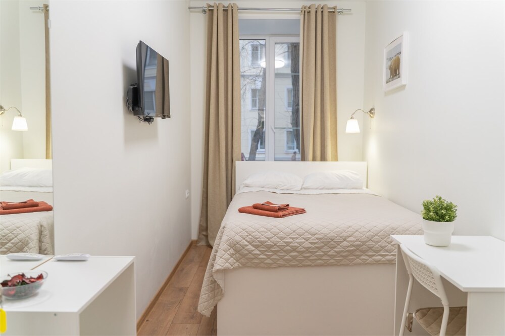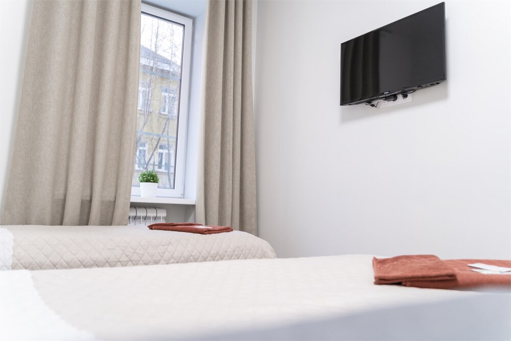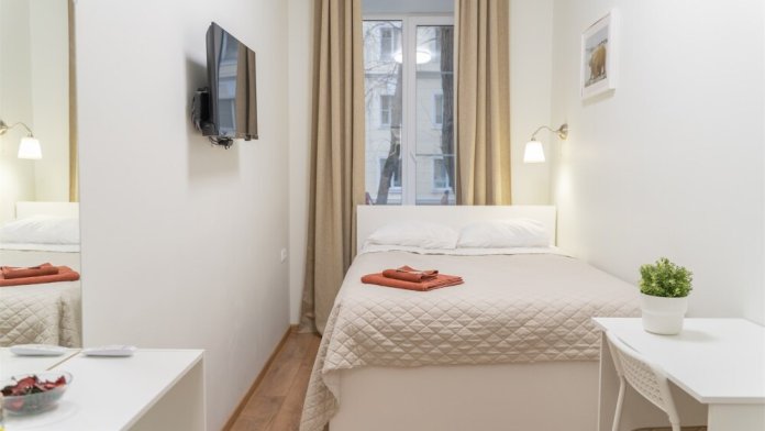 Замечательный интерьер отеля располагает к отдыху, как после трудового экскурсионного дня, так и после деловых встреч и переговоров. У нас уютно, как дома. Кровати очень удобные, поэтому спать на них – одно удовольствие. Вечером, после трудового дня, можно посмотреть телевизор или почитать книгу. А может, Вы хотите провести вечер в Интернете? Гостям предоставляется бесплатный Wi-Fi, также как и чай или кофе на общей кухне.